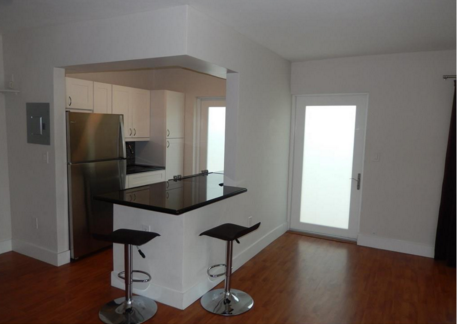 Open chef kitchen with stainless steel refrigerator and Chef's slide in oven. White wood cabinets with full pantry, black granite counter tops and breakfast bar. Impact windows and a sliding glass door to the balcony. The kitchen is open to the living room and dining space with nice laminate flooring throughout. Extra large bedroom with build in closet and reading nook. In the hallway is another large build-in closet. The bathroom has designer fixtures and shower with tub. A definite must see
