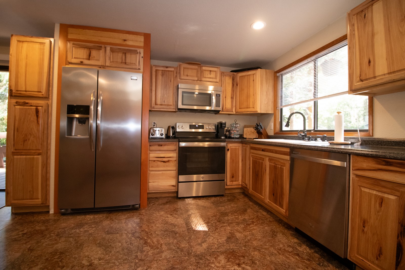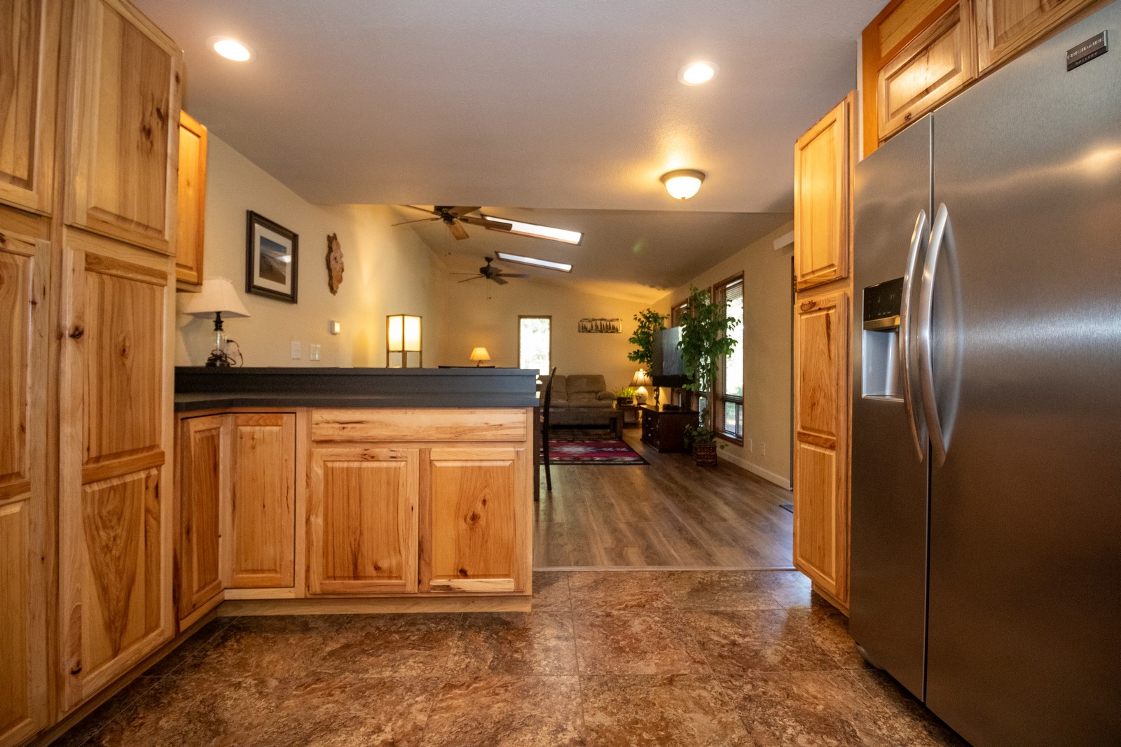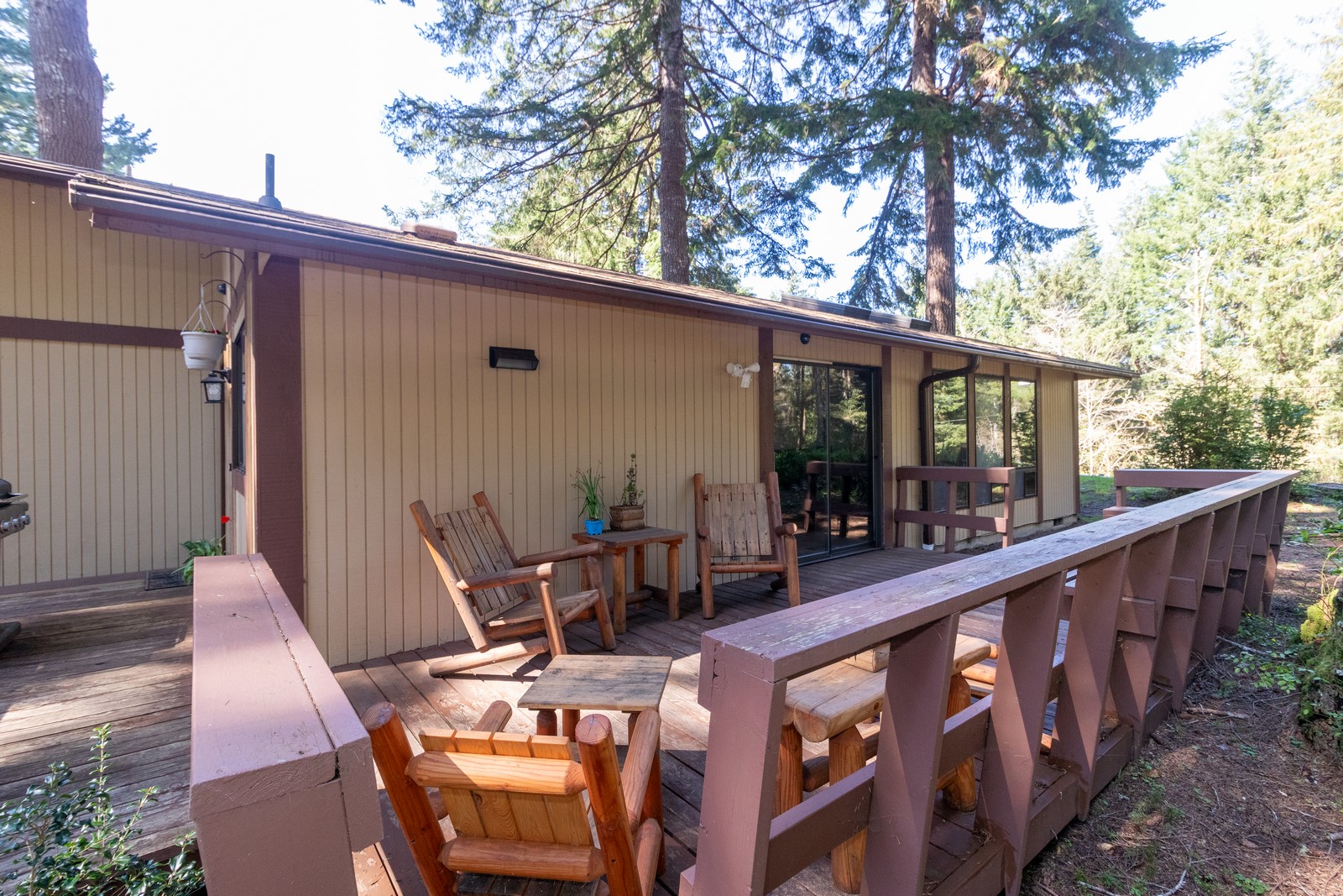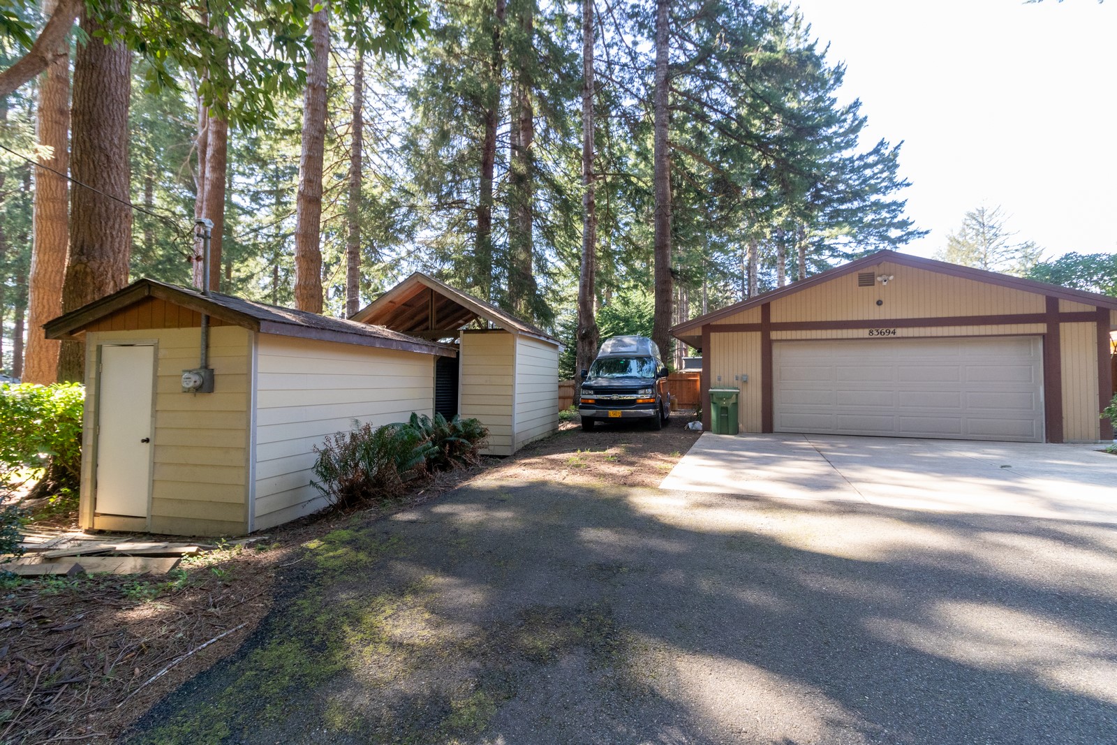 Nestled among the trees, this well-cared-for single-level home offers comfort, updates, and room for all your toys. The kitchen was beautifully updated in 2014 with stainless steel appliances, hickory cabinets, and an eat bar, plus a slider leading to a spacious deckperfect for outdoor entertaining. The large primary suite includes a slider to the backyard patio and a hot tub (new in 2023) for relaxation. Recent upgrades include a new electrical panel with generator auto transfer switch, a new electric whole-house furnace with generator integration, a new heat pump (2023), and new concrete walkway and driveway. Youll also appreciate the new 40-year composite roof with new plywood and skylights, along with a new fence across the backyard line. Theres plenty of space to park your RV, boat, or sand rail, with 30-amp service already in place. Additional features include a 20KW whole-house generator with automatic transfer, three 120-gallon propane tanks, and a new septic system. Located just minutes from Honeyman State Park and the Oregon Dunes, and a short drive to Old Town Florence for dining and shopping. Enjoy nearby fishing, crabbing, and boating on the Siuslaw River and Ocean Bay.