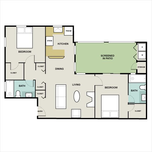 2 beds2 full baths