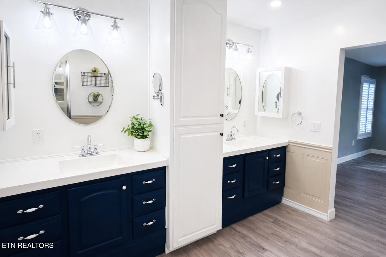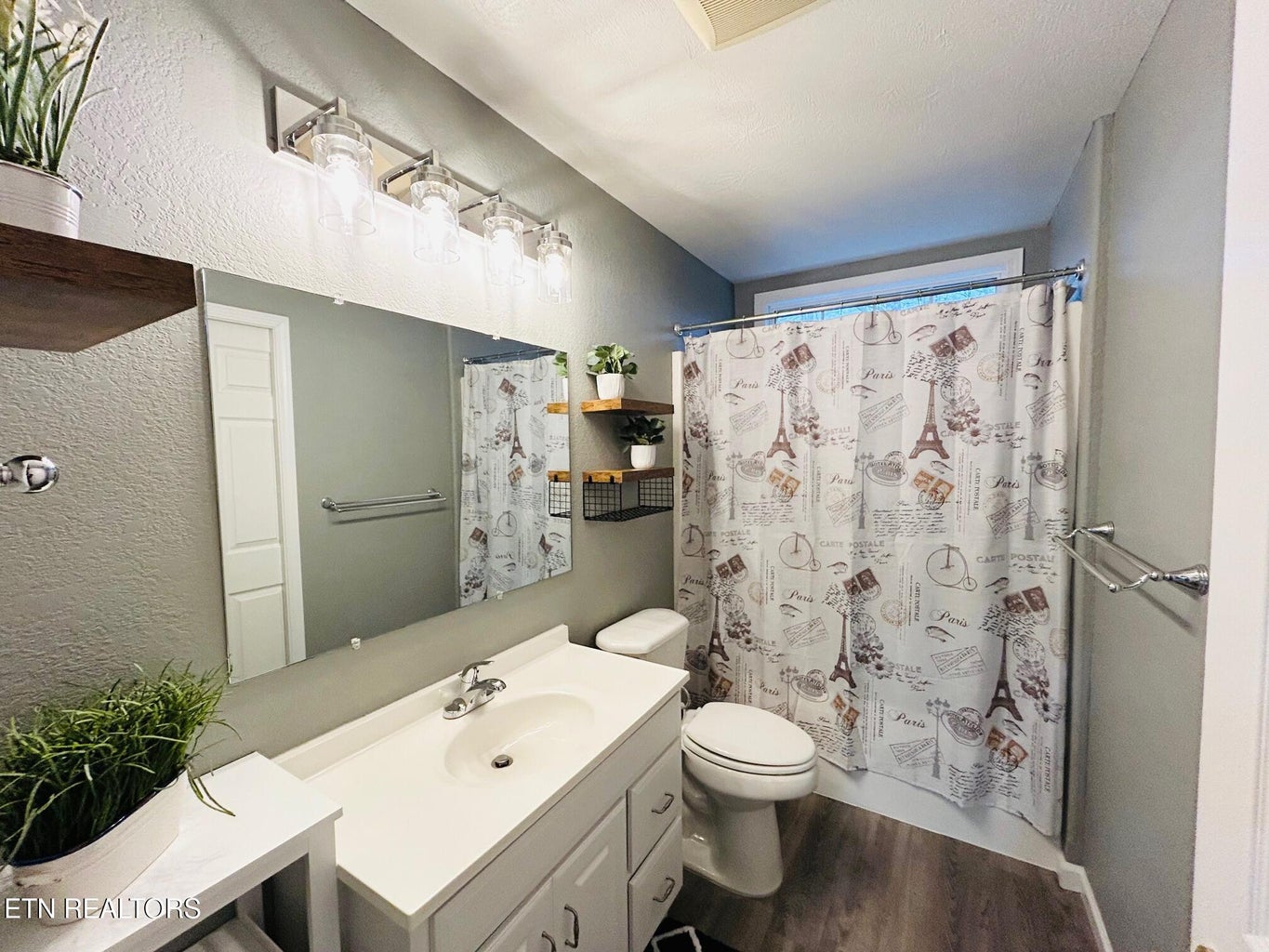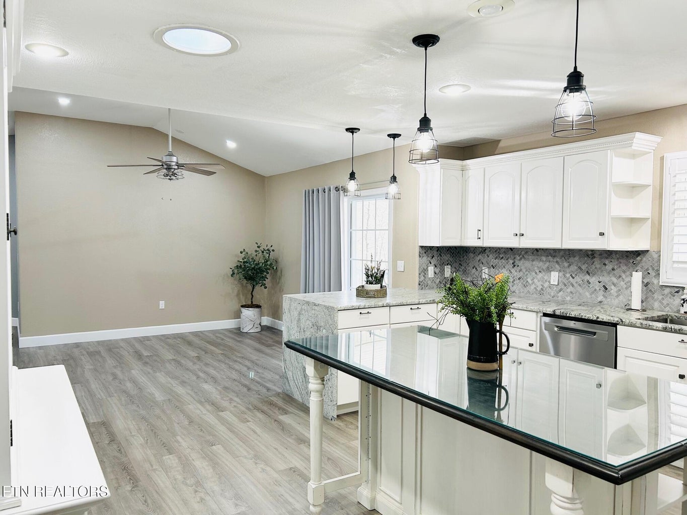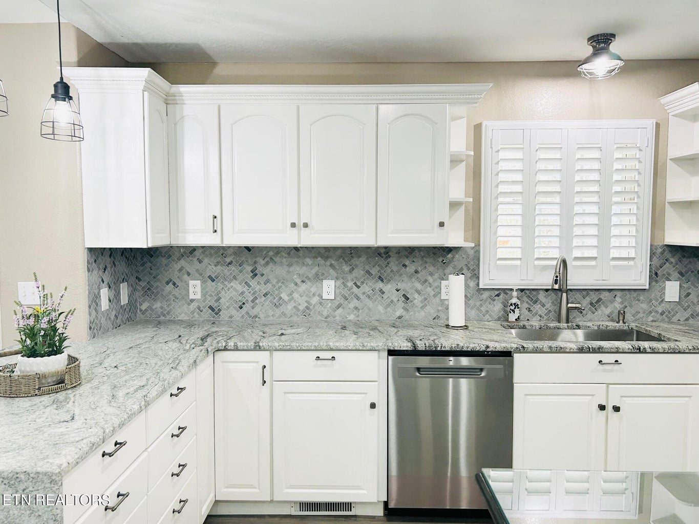 Nestled in the sought-after North Hampton subdivision of Fairfield Glade, this custom-built 4-bedroom, 3-bath basement ranch offers 3400 sqft of thoughtfully designed living space on 2.37 acres (2 lots). With a brick front exterior, an oversized circular driveway, 2 car garage with side door entry and a covered front porch, this home welcomes you with an inviting first impression. Step inside to an open-concept layout with 10' ceilings in the living and dining areas, a charming bay window, and a white and stone electric fireplace. The home features new enhanced vinyl plank flooring, fresh paint, new recessed lighting, decorative lighting and ceiling fans, and custom plantation shutters throughout the main level. Enjoy seamless indoor-outdoor living with a large dining area that opens to an expansive deck, partially covered for year-round enjoyment, offering seasonal mountain views. The gourmet kitchen is the heart of the home, featuring new stainless-steel appliances, a wall, oven, radiant electric cooktop, raised-panel cabinets, large island, pendant lighting, new granite countertops including a breakfast bar with a waterfall edge, decorative tile backsplash and a walk-in pantry. Additional highlights include a foyer closet, extra storage space, and a laundry area with a new washer and dryer. With a split-bedroom floor plan, the primary suite is a tranquil retreat, with abundant natural light, a private patio door to the deck, decorative barn doors leading to a walk-in closet, and the updated ensuite bathroom that features double vanities, new light fixtures, extra storage, walk-in shower, and a soaking tub. On the opposite side of the home, you'll find two comfortable bedrooms providing privacy for guests. One with a double door closet, large window, and private access to the guest bath. The other with a large closet and two large windows. The guest bath includes a vanity, tub/shower combo with a transom window. The redesigned lower level is perfect for entertaining, featuring a beautiful staircase leading into a spacious recreational room with new enhanced vinyl plank flooring, board and batten wainscotting, decorative ceiling tiles, multifunctional LED lighting, a beverage area, and a full bath. Also downstairs, you'll find an additional bedroom with ground-level access, a large storage room, and a dedicated workshop also with ground level access. Outdoor living is just as impressive with a side of the home garden area, freshly painted upper deck, a covered ground-level patio, and a storage shed. Additional upgrades include new landscaping, new sprinkler system, and new gutters. HVAC is approx 9 years old. This home is move-in ready with upgrades throughout. Don't wait to experience it for yourself! Buyer to verify all information and measurements to make an informed decision.