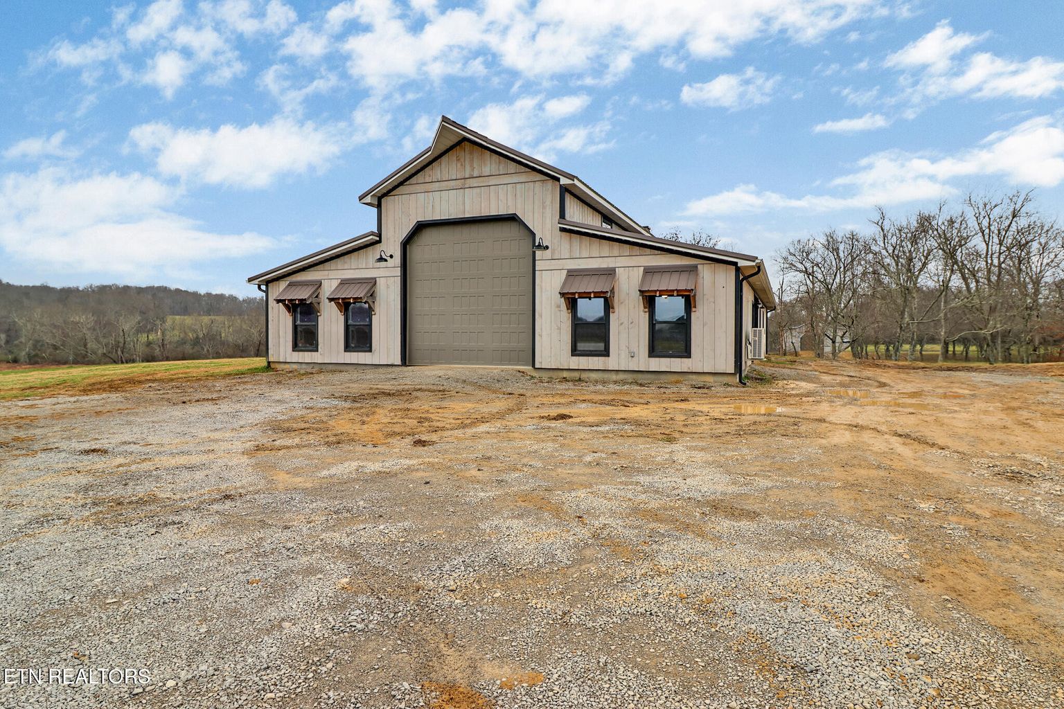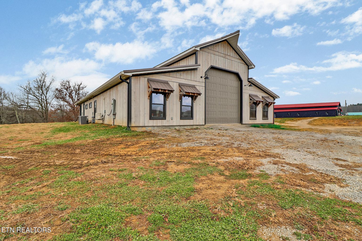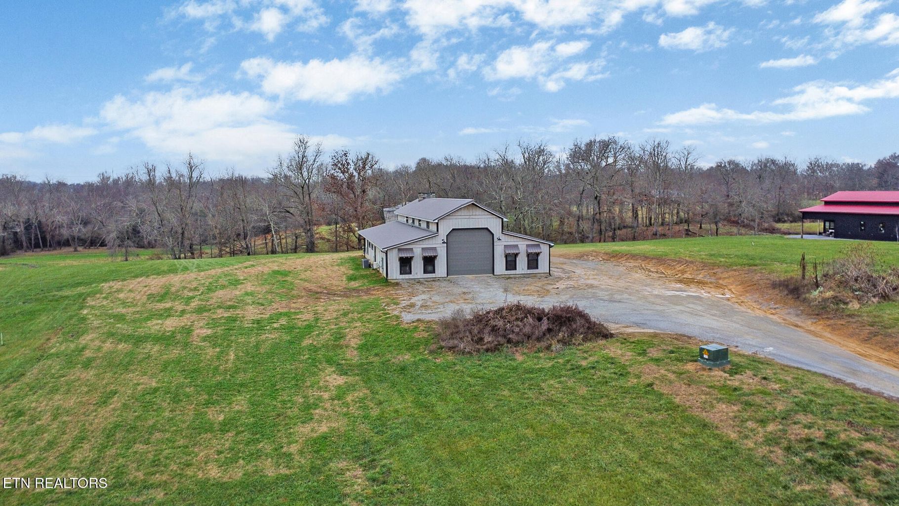 Discover a TOTALLY UNIQUE architectural gem set on 7.8 unrestricted acres. This is more than a home; it's a private sanctuary where distinct design meets natural beauty. The unique design of this residence stands out, featuring thoughtful details and spaces that maximize natural light and capture the serene views of the surrounding land. Its non-traditional layout provides a captivating living experience. At the heart of the home, the gourmet kitchen is a chef's dream, centered around a professional-grade Z-line dual-fuel range. This high-performance appliance combines a precise gas cooktop with an electric convection oven, embodying 'Attainable Luxury' for flawless cooking results. A built-in booth with breakfast bars on both sides gives you plenty of seating options for family and guests. The living area has floor to ceiling stone with a see-thru fireplace. You can enjoy the fire inside or sit on the covered porch and watch the flames flicker as you survey the natural beauty of the land. With 1450 sq.ft. of garage space (which is heated and cooled), you can work from home, build that classic car you've always wanted or set up a home gym. Attached to the garage is an office and a half bath. With no restrictions on the land, you have the flexibility to fence for horses or simply enjoy the expansive space and natural tranquility. The 42x48 barn comes with 4 stalls, 2 equipment rooms and a drive thru hallway. All this comes with a storm shelter/safe room. Experience the perfect blend of modern luxury and rugged independence in this extraordinary property.