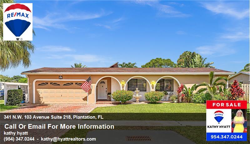 This property at 341 N.W. 103 Avenue , Plantation, FL33324 has listed by kathy hyatt but has not been updated for quite some time. Please contact the listing agent and broker for up to date information.