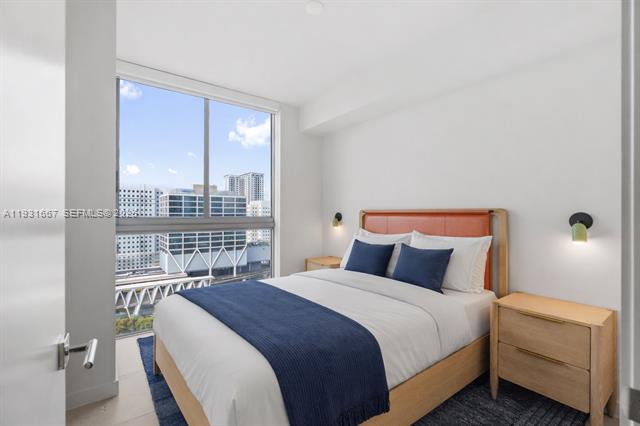 Fully furnished 825 SF 2-bed residence at The Crosby, a new construction luxury tower in Miami Worldcenter. Interiors curated by AvroKo feature 9 ceilings, floor-to-ceiling glass, balcony, and finished closets. Italian kitchen with Bosch appliances, refrigerator/freezer, convection oven/microwave, cooktop, and dishwasher. Spa-style bath and custom Italian vanity. Full-size W/D, lighting with dimmers, smart-home system, and keyless entry via app, code, or keycard. The 31-story tower offers 22,000+ SF of resort amenities: rooftop pool with jacuzzi, cabanas, grills, rooftop restaurant/bar, fitness center with saunas and plunge pools, coworking, lounges, game room, curated art, 24/7 security & concierge. Near Miami Worldcenter; minutes to Wynwood, Brickell, South Beach, and MIA.