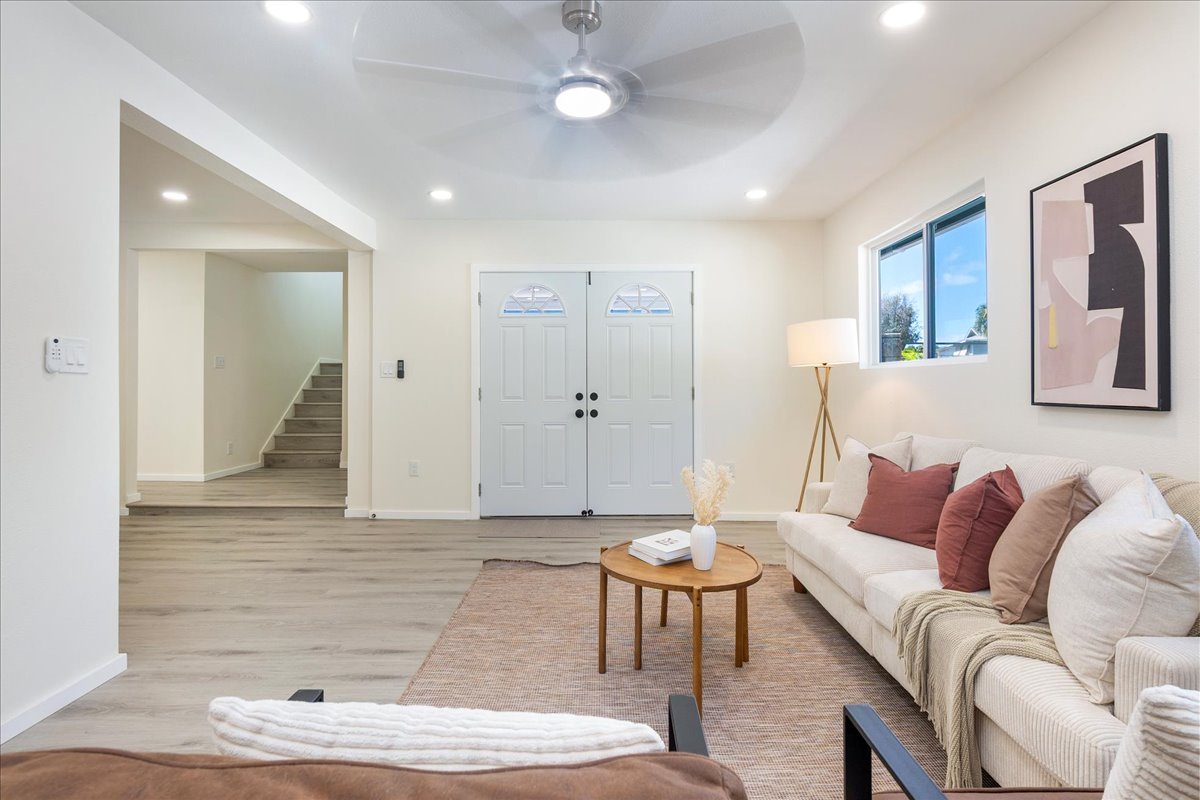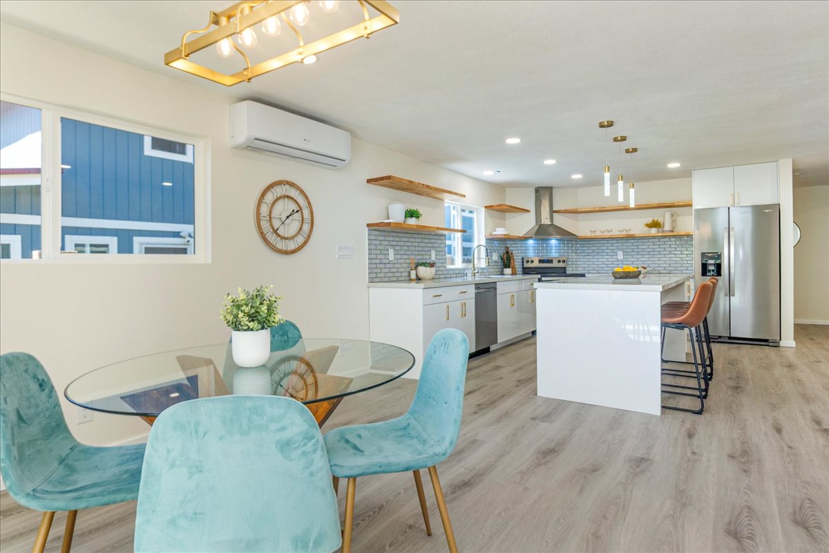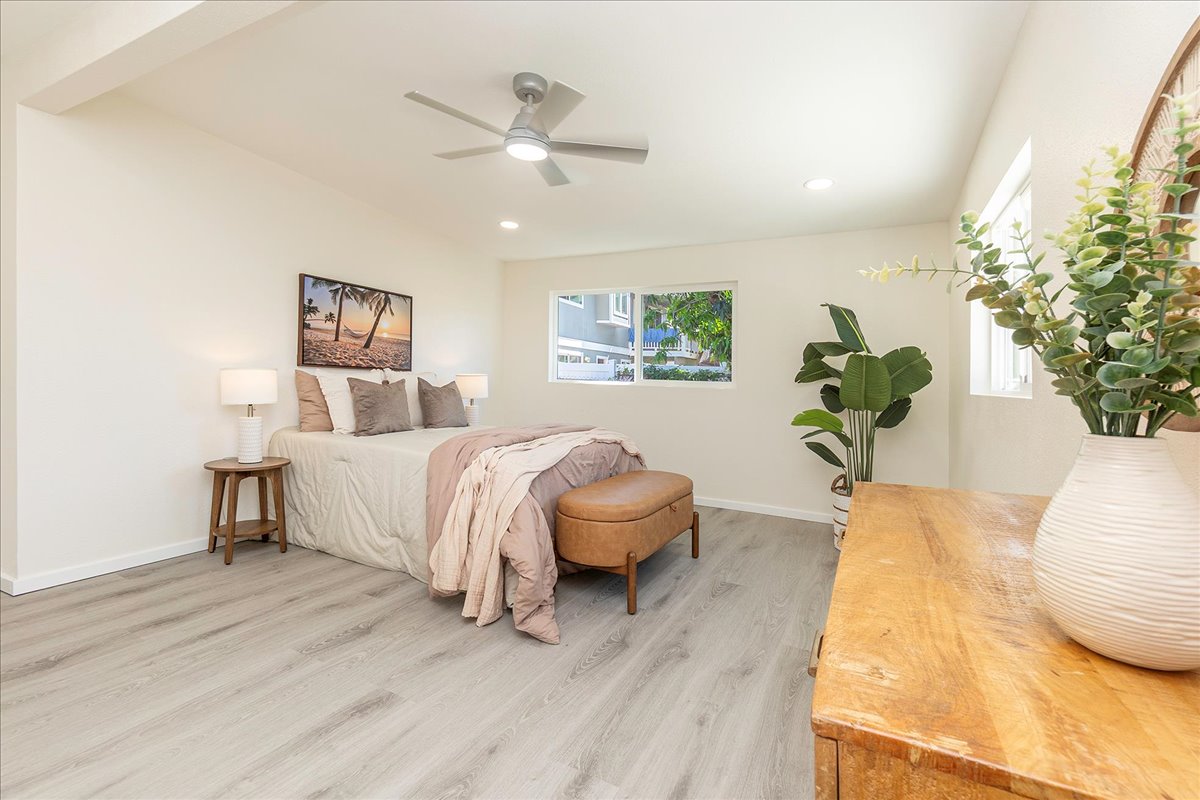 Discover the epitome of extended family living in this beautifully remodeled large home! Featuring an efficient and versatile two-story floor plan, the main level offers 2 bedrooms and 1 bath, complete with a kitchenette and private entrance-perfect for extended Ohana living. The inviting living room flows into an open-concept kitchen and formal dining area, providing easy access to the rear yard for outdoor enjoyment. An interior staircase leads to the upper level, where you'll find 3 additional bedrooms / 2.5 baths, making this setup ideal for multi-generational living, aging in place, or generating rental income. Every inch of this home has been meticulously upgraded from floor to ceiling, showcasing new windows, doors, flooring, kitchens, and baths, along with modern appliances and updated plumbing and electrical systems. Plus, enjoy peace of mind with a brand-new roof. Relax on the welcoming front covered lanai, or enjoy the front private setting for the gardening enthusiast. Nestled in the desirable Pokai Bay Estates community, you're just moments away from Tamura Super Market, local eateries, shops, and the stunning Pokai Bay Beach, ensuring all your needs are within reach!