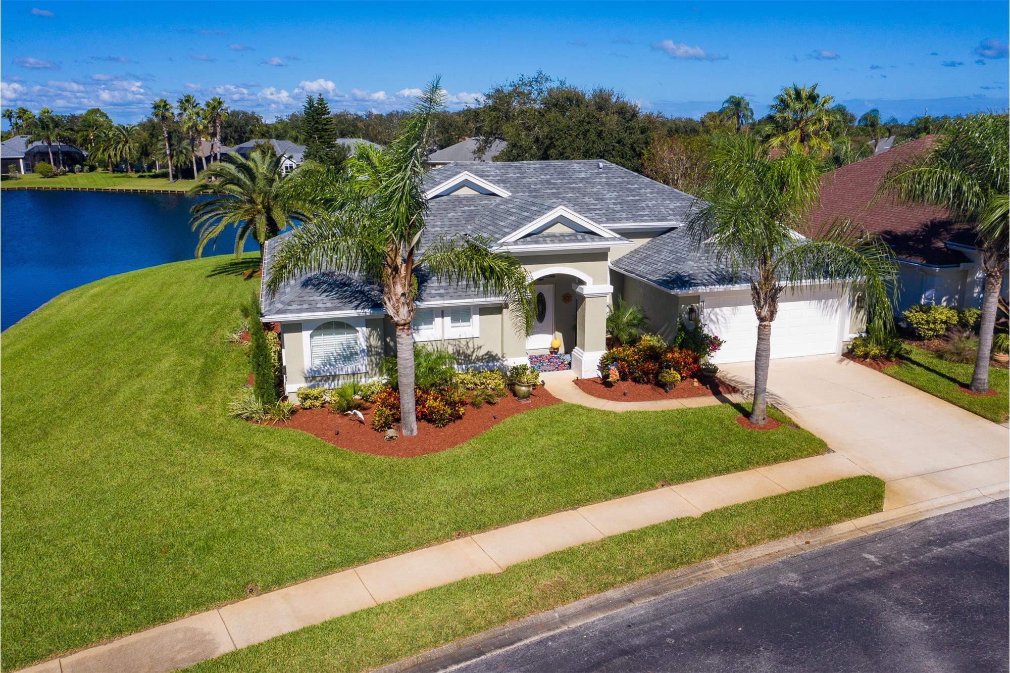 Premium lakefront home in Ocean Palms! This concrete block home offers 3bd/2ba, and a spacious 2,002 sq. ft. of heated and cooled space. Lake views from almost every room and no neighbors on one side make this an exceptional opportunity. New roof and freshly painted exterior and interior in December 2018, a large lanai to enjoy the views, split floor plan, open kitchen, new hardwood floors in the living and dining rooms, new front door, and all beautifully landscaped with up lighting Located in the gated community of Ocean Palms which offers a dock on the Intracoastal to enjoy the sunsets or fishing, community pool and spa, picnic area and tot lot. Close to the beach, shopping and restaurants too!