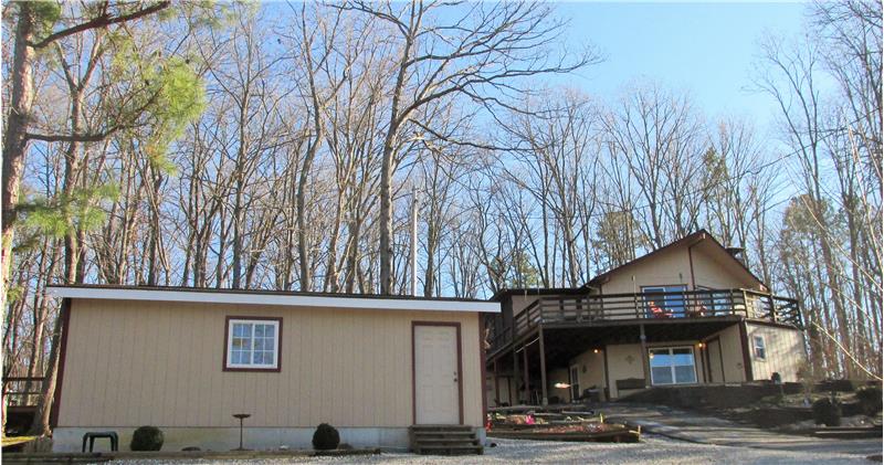 Situated on 7 lots in gated community, this 2 bed/2 bath home has everything you need...Privacy, entertaining space inside and out, huge master suite with private bath, updates throughout, open upper level with decks surrounding the home, archery range, mini pond, small wet weather creek and walking trails through the property! Detached-oversized garage, attached carport, built in firepit, woodburning fireplaces in master suite and living room. Bedrooms are in lower level so upstairs is welcoming with vaulted ceilings and open living/dining/kitchen/bar concept. Must see for yourself!
