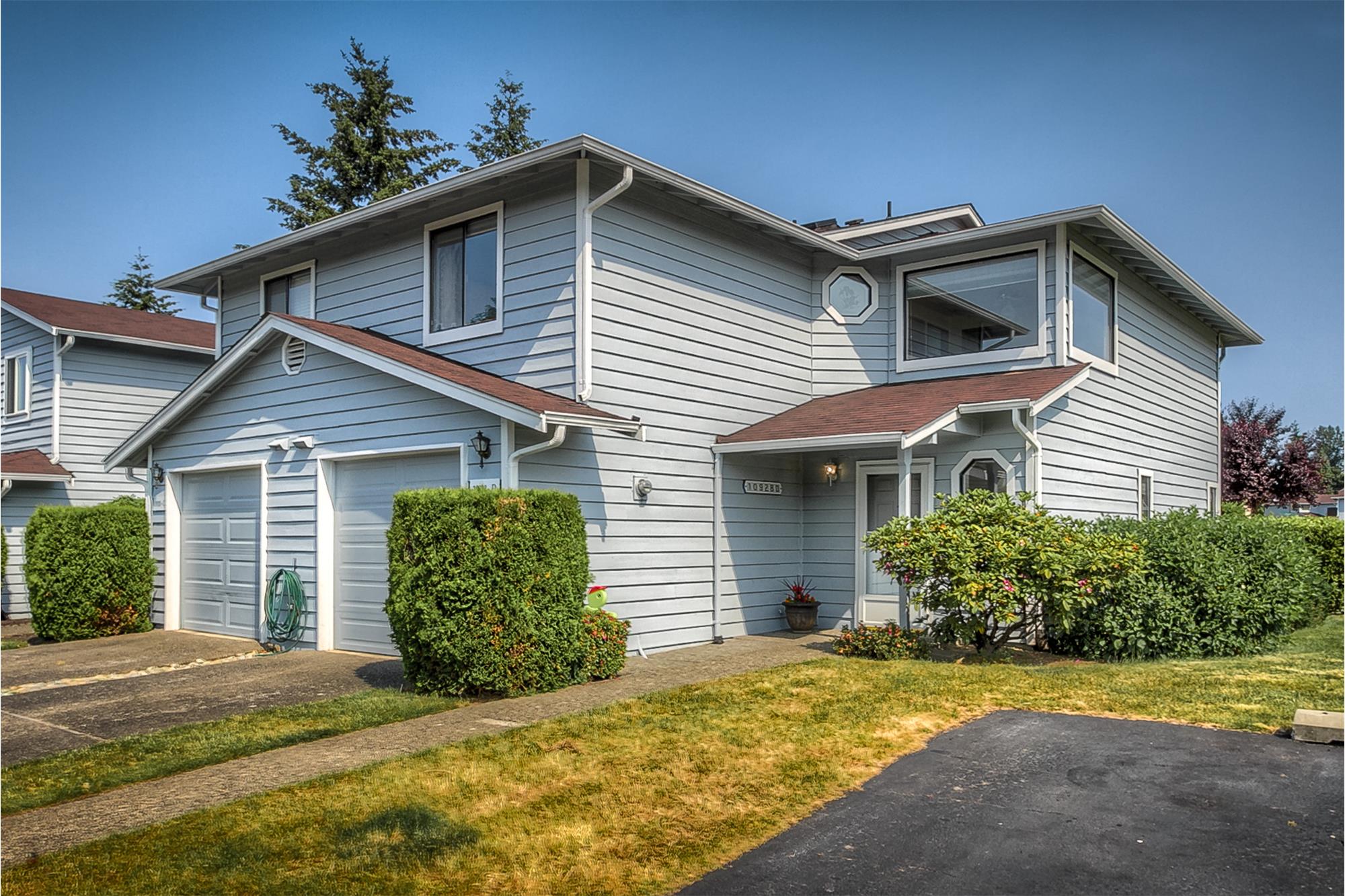 Crisp and clean two story townhome features an open floor plan, skylights, hardwood floors, decorative windows & more. Enter through the two story entryway, into the easy flow open floor plan. Remodeled kitchen with breakfast bar has an abundance of counter & cabinet space. Living room with cozy fireplace is spacious & the dining room has a slider to the backyard. Master bedroom w/ private bath & walk-in closets. Attached garage + additional parking space. Close to shopping & commuter train.