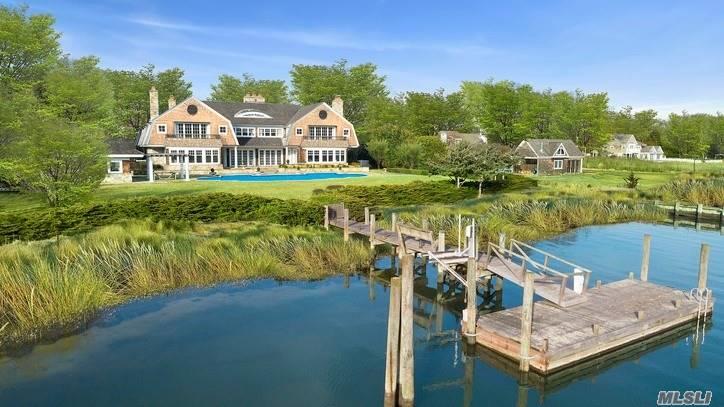 Bob says this one is the real deal. Tranquil waterviews distinguishes this quintessential Hamptons retreat. Nested behind 1.60 lush waterfront gated acres, on the deep waters of Stone Creek for boating. The 12,000sf cedar estate in the historic hamlet of Quogue offers an incomparable lifestyle filled with picturesque nature filled views enveloping every corner of the estate. Electric Dock, Heated Pool, Pool House, Outdoor Shower, Kitchen, Radiant Heated Driveway , 3 Car garage & more. Perfect Hamptons location, close to all! Credit Natalie Lewis