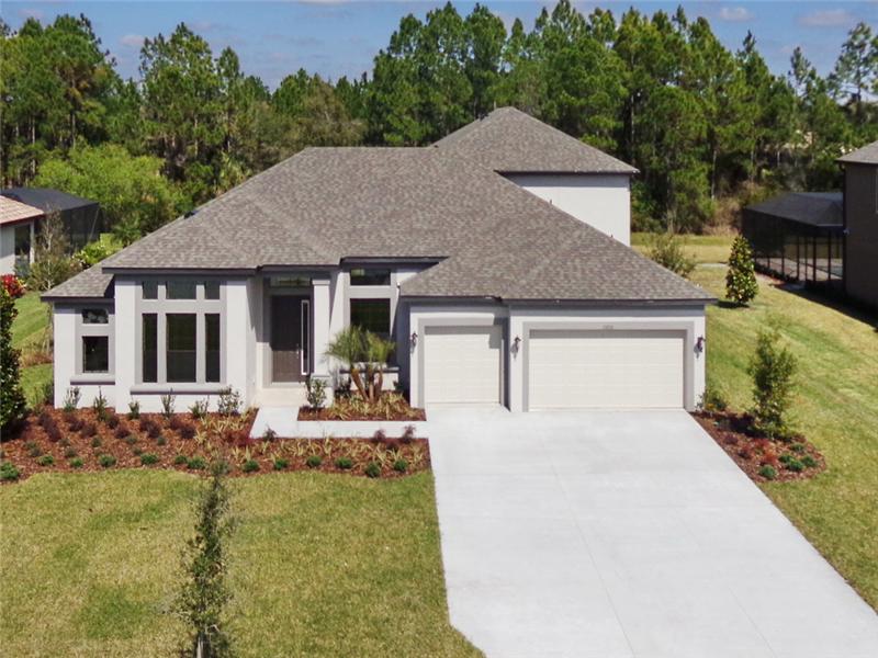 Brand new construction backs up to conservation. Built as an Energy Star Certified home, it also comes with a 30 year transferable structural warranty. As you step into this home, your eye is drawn to the 12-foot ceiling complete with a tray ceiling in the formal living and dining room. Arches draw you into the great room area where you can be at your kitchen island and still enjoy the company of everyone in the family room or separate cafe. Triple sliding glass doors in the family room takes you onto the spacious lanai area with plenty of room for that pool of your dreams. The exquisite maste