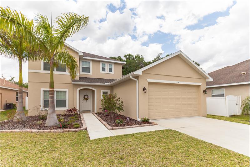 Look no further, you've just found the perfect place to call home! This almost New beautiful 4 bedroom, 2 1/2 bath, 2 car garage home has everything you could want and then some. As you enter the home the first thing that stands out is the rich look of the distress engineered hardwood flooring. Your full formal dining room is on the left and a half bath conveniently located on the right. You then enter the Great room with striking vaulted ceilings, that open to the 2nd story for a grand effect opening to the kitchen which features an oversized island with Granite counter tops, Premium 42" cabinetry with soft close doors (throughout), Stainless Steel appliances and full breakfast nook. The master suite is downstairs and includes a huge walk-in closet with organizers. The master bath has his and hers sinks and walk-in shower. As you move upstairs you'll find 3 additional bedrooms & oversized bath with Tub/shower and double vanity. When you step outside there's a fully screened lanai and large private backyard which has plenty of room for the things you love. The yard has a new premium vinyl fence with complete landscaping that backs up to a lush greenbelt with wooded view and pond. A few other things to note are the upgraded interior doors, & hurricane resistant glass, shutters & roof. The location is also hard to beat, shopping is just minutes away and it's centrally accessible to St. Pete, Tampa, Bradenton, Sarasota and our gorgeous sandy beaches. Make your appointment today as this one won't last long!