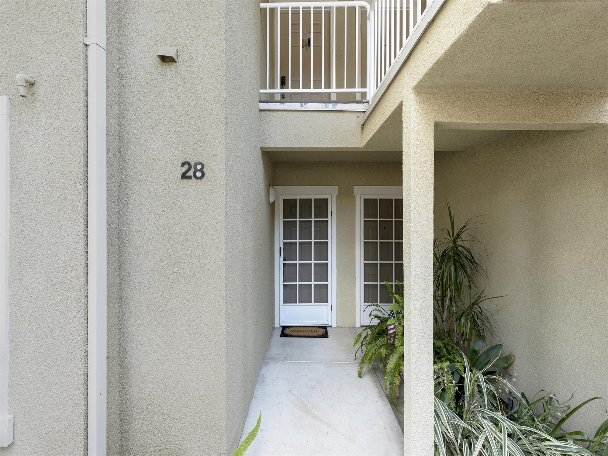 Lower-level unit with entry via short staircase and screen door