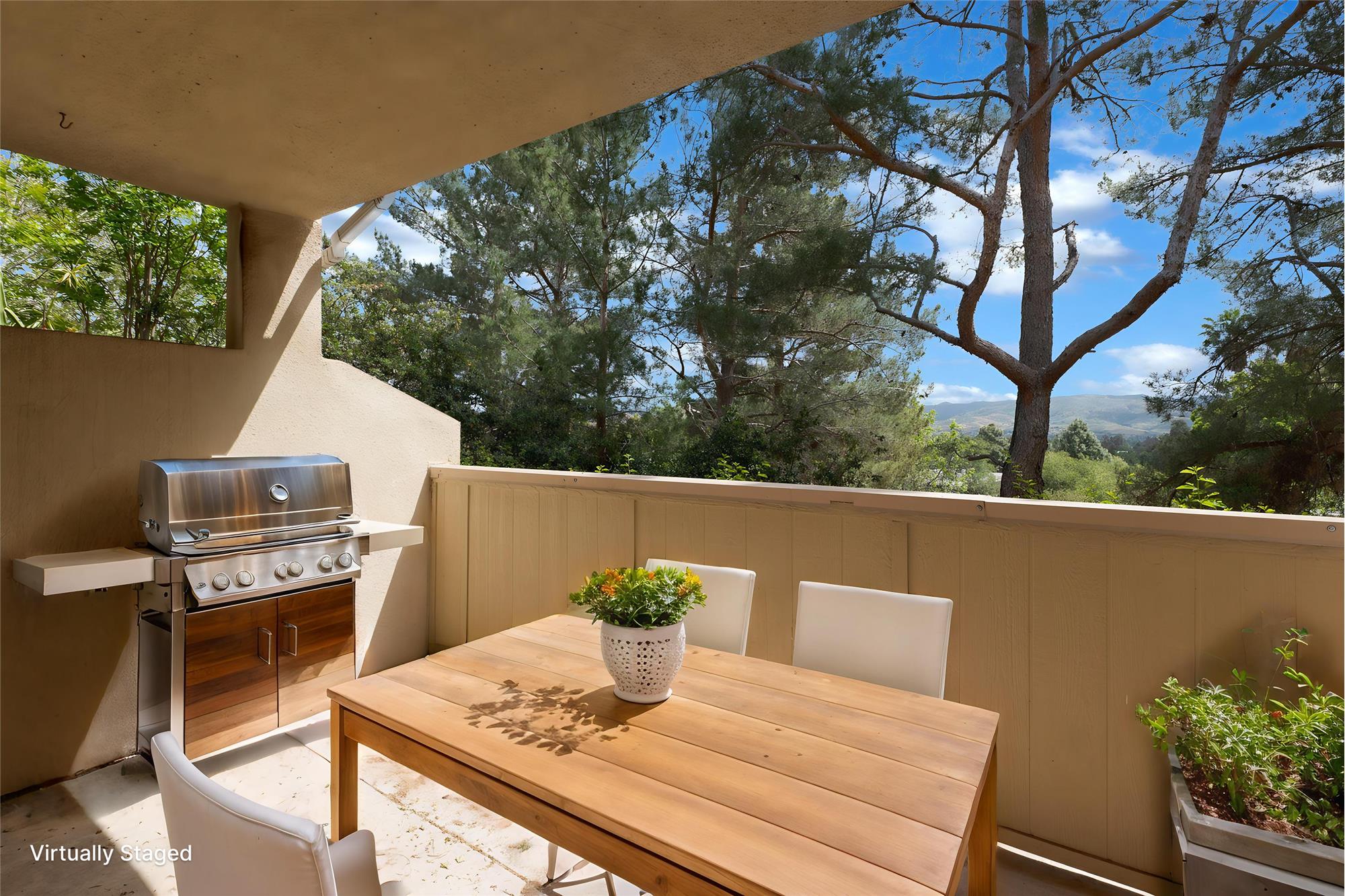 Sunny patio with storage closet