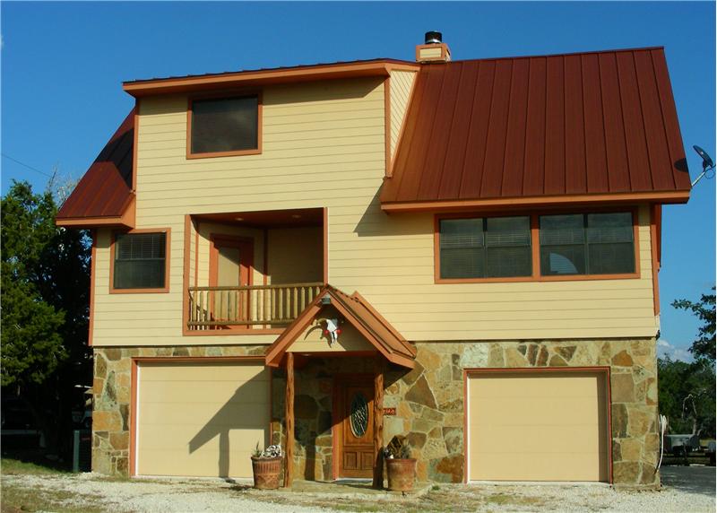 Lake Community Get-Away in the Hill Country * Harley Lovers Custom 3 Story Builder's Home, 2x6 Construction * $10K Landscape Allowance * $20k+ in Furnishings CONVEY * Flat Screen TV's, Appliances, 2 Wine Chillers, Surround Sound... * 2 Balconies, Covered Patio, 1 Garage space is converted to Guest Suite w/ AC, Kitchenette w/ Granite & Full Bath, * RV Parking w/hook-ups * Granite Counters Everywhere * 2 Built-in Wine Chillers *Soaring Wood Ceilings *HOA Amenities-Pool, Club house, Boat Ramp, RV Area, Private Gated Entrance, Lake Access, water & sewer system.