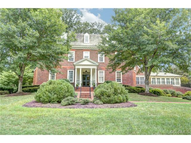 Majestic Richmond Virginia historic home for sale overlooking a sweeping, rolling lawn on 2.5 acres. Originally constructed in 1940, this architect-designed classic Georgian home offers period architectural details and extensive millwork yet has been meticulously renovated and expanded. Unique features include a graceful curved staircase and Palladian window, random-width heart pine floors, beautiful splayed windows, plus several arches with pediments.