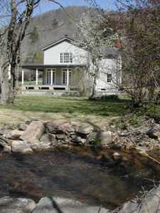 Warm Springs Virginia historic home dates back to early 1800s when Warm Springs was a bustling village with large hotel, spa scene and coach traffic headed west. Now it occupies a quiet corner next to Gristmill Square. Warm water from the historic thermal springs flows through the back yard as a tumbling brook. The Payne House was completely renovated in 2005 with all new wiring, plumbing, heat, A/C, tiled baths and copper roof. Four french doors open the kitchen and breakfast area onto a large wrap around porch focused on the stream and old waterwheel of the adjacent mill. There are three fir