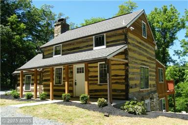 Loudoun County historic log cabin for sale on 8 wooded acres lovingly renovated in 2015. Exquisite red kitchen cabinets compliment granite & butcher block counters, stainless appliances & original wide plank floors. Stone walls, deck/patio/porch. Separate tenant cottage (currently rented @ $850/month).