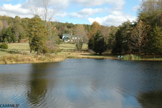 Charming Charlottesville historic home in a private valley on 106 open and wooded acres at the base of the historic Southwest Mountains. Stunning views of the open fields, small lake & mountains abound. Main residence enlarged, renovated & updated. Stone walls, gardens, pool & stone gardening shed. Fully equipped barn & equipment shed.