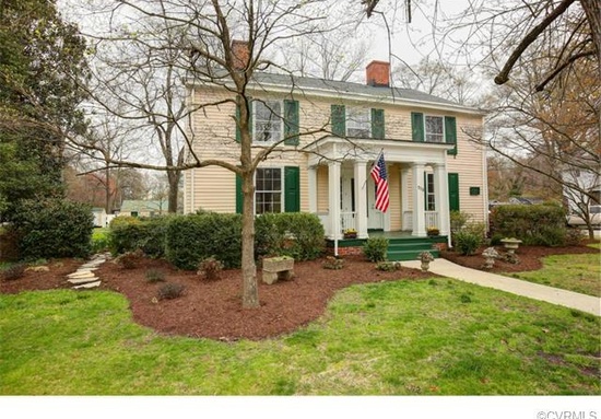 Landmark Greek Revival historic home for sale near Richmond house sits on a double corner lot in picturesque Ashland overlooking the railroad tracks landscaped with a fish pond and mature gardens. Stonewall Jackson stayed at the house in 1862. 8 fireplaces, 1 car garage & garden house. Heart pine floors. Perfect for gardeners or history buffs.