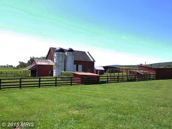 Purcellville Virginia historic farm for sale on 50 acres. Solidly built, stone Quaker home with beautiful pastoral and Blue Ridge Mountain views from 3 porches. Spring-fed pond. Barn, equipment shed, chicken coops and other outbuildings. Two unit guest cottage.