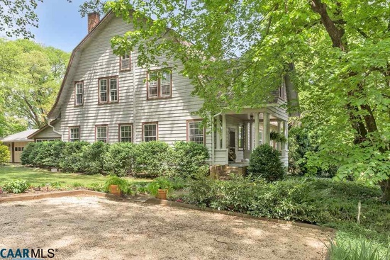 Fabulous Charlottesville historic home for sale with privacy & ambience of country-style living in the heart of the city set on an elevated, picturesque 1.36 acres with majestic trees & seasonal Blue Ridge Mountain views. High ceilings, heart-pine floors, period trim work, 2 working fireplaces, 2 master bedrooms, central A/C, recent roof (2012), newer electic & plumbing & oversized 2 car garage. Bright sun rooms, deep covered front porch & slate veranda screened by boxwoods. 2 cottages could be studio/office, guest house or investment (typical rent exceeds $22k/yr).