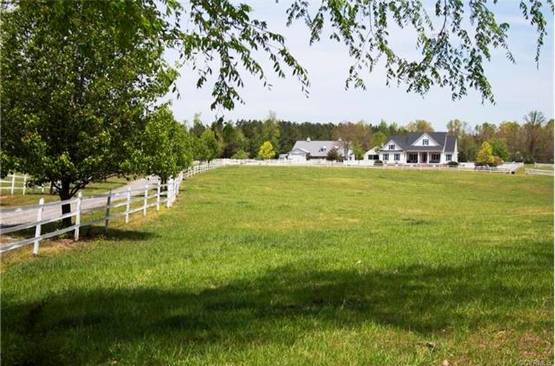 Chesterfield County Virginia horse farms for sale on 39.5 acres with a 6 stall center aisle horse barn with tack room, feed room and wash stall. 18 acres of Centaur horse safe fenced pasture with water and electric in each of the 3 pastures, a lighted round-pen and riding ring with arena footing. The fabulous custom-built home has an open, split floor plan with a gourmet kitchen that opens to the family room with built-ins and a brick, gas-burning fireplace. Amenities include a 60' x 72' building with an 1,100 sq ft. two bedroom guest house or in-law suite.