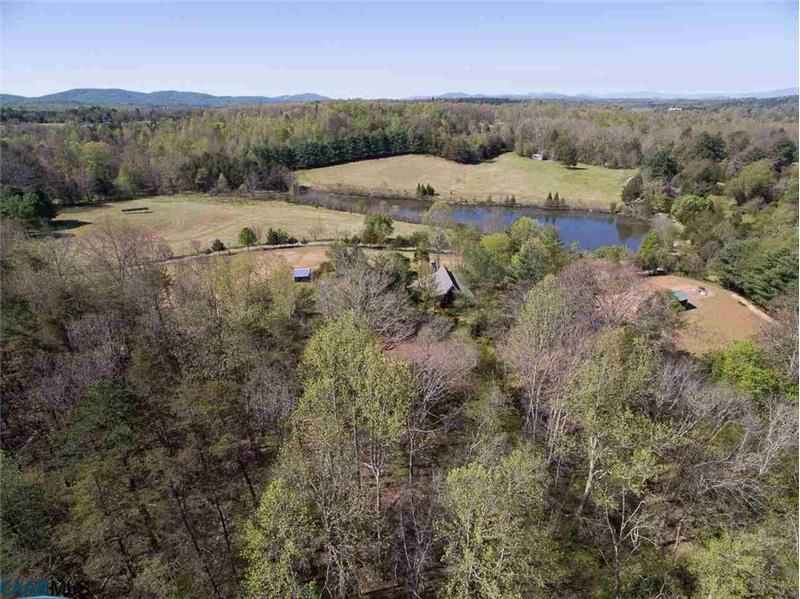 Extraordinary Charlottesville farm for sale on 64 rolling acres with 3 homes, 2 ponds, numerous outbuildings, open pastures, mature hardwoods, beautiful plantings & vegetable/herb garden. The log, post & beam main residence, built in 1988, is a solar energized home with superb energy efficiency with a vaulted-ceiling great room, sun-room, an attached greenhouse, 2 wood stoves, large solar installation, cast-iron Kohler tea-for-two tub, and lovely decks. The cottage has 3 bedrooms, 2.5 baths. The circa 1850 farmhouse offers 1,400 sq.ft. of living space with numerous updates.