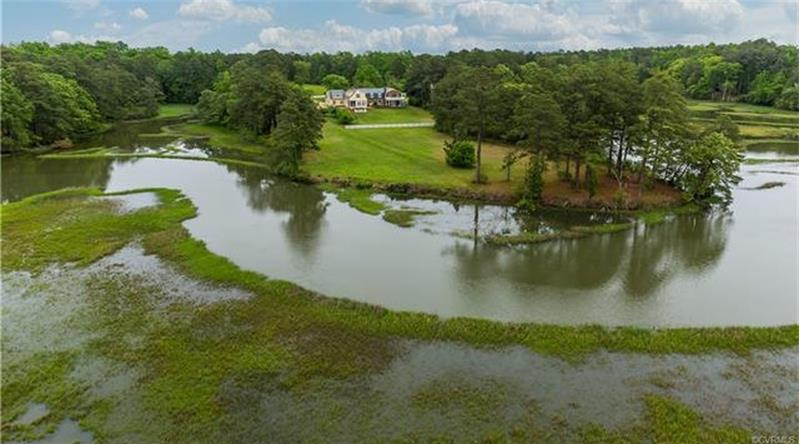 Gloucester Virginia horse farm for sale on 52 waterfront acres overlooking Jones Creek and York River with several pastures and barn patterned after the barn at Mount Vernon. Many historical details throughout home and property. The original home is brick with slate roof. New addition with ten foot ceilings. Large eat-in kitchen with fireplace. The addition includes a large solarium with fireplace, entrance sitting area, and screened porch. The outdoor entertaining areas include a great room with fireplace and brick terraces. 4 car garage.