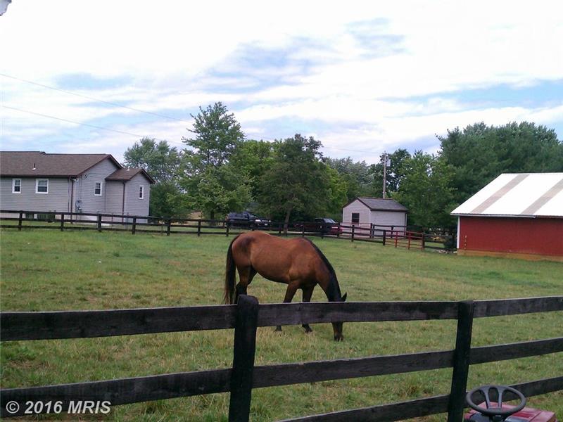 Small Clarke County Virginia horse farm for sale on 16 acres with a new 9 stall stable with tack room, wash stall with hot & cold water, 2 run-in sheds, 150'x200' blue stone & sand riding arena. 5 paddocks. Second barn with 2 birthing 16'x16' stalls. Updated roof, windows, kitchen granite, stove, freshly painted. Fully-finished basement with wood stove.