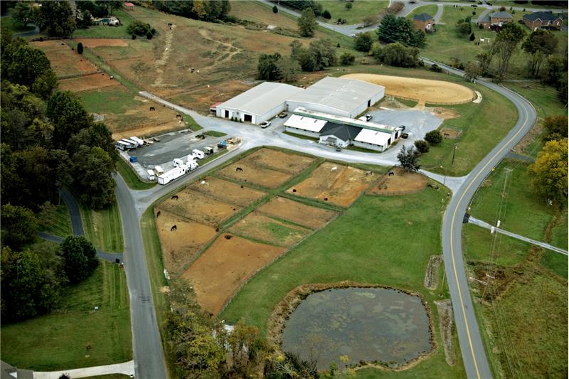 Professional equestrian training facility for sale on 18 acres in an upscale neighborhood near Randolph College, Liberty University & Lynchburg College. 3 buildings with 37000 sq ft under roof. 24 12'x14' and 28 12'x12' rubber-matted stalls. Lighted indoor and outdoor riding/show rings (indoor ring is 100'x150'). Electric and wood fencing, paddocks & pasture. Multiple tack rooms, feed rooms, labs and wash bays, office and restroom. 3 ton grain storage bin. Water and sewer available. Extensive horse trailer parking. .40 mile state maintained road frontage and two commercial entrances.