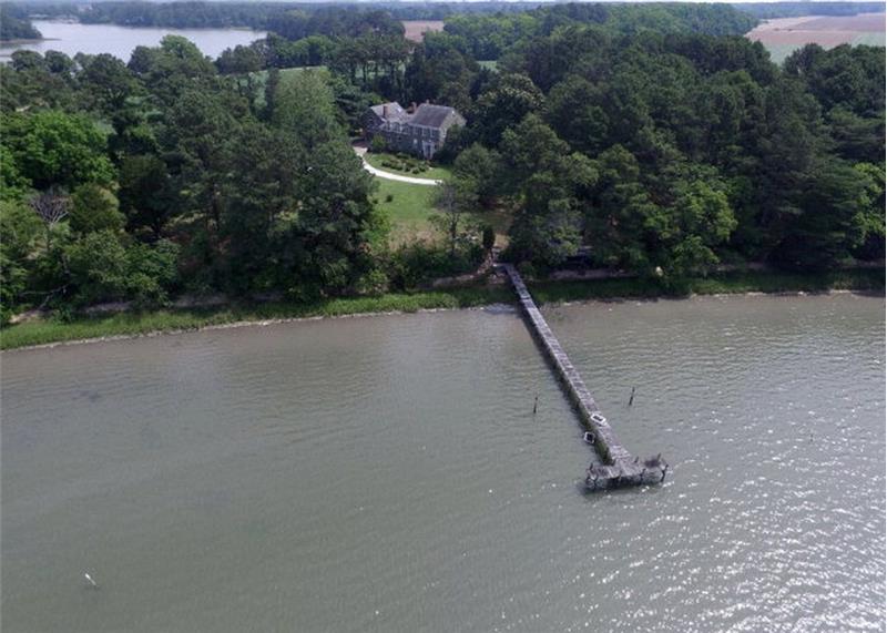 Northumberland County Virginia historic plantation for sale on 11.5 acres overlooking Old Plantation Creek and surrounded by water in Cape Charles. Fabulous views and mature plantings all on a park-like setting. Original heart pine floors, pocket doors, molding, mantles and doors. Country kitchen with wood burning fireplace. Circular screened porch down by the water for entertaining. Long pier for boats and fishing.