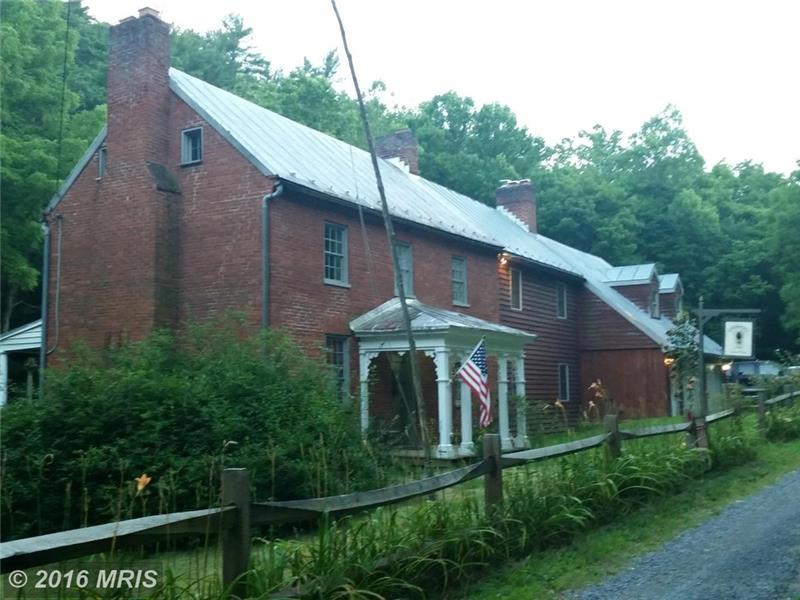 Restored Frederick County, Virginia historic tavern for sale on 30 acres with two streams, 3 wells, 2 barns, a tractor shed, 2-car attached garage & guest cottage. Loaded with history and near Winchester.