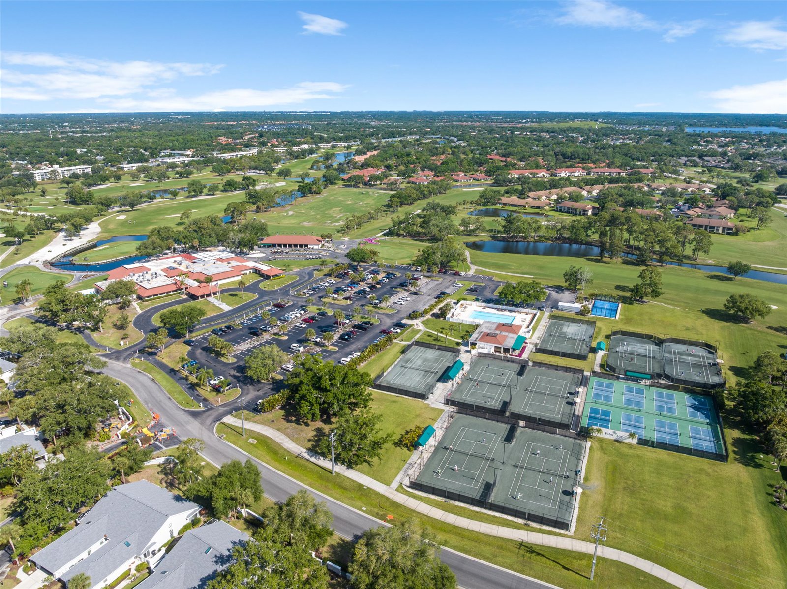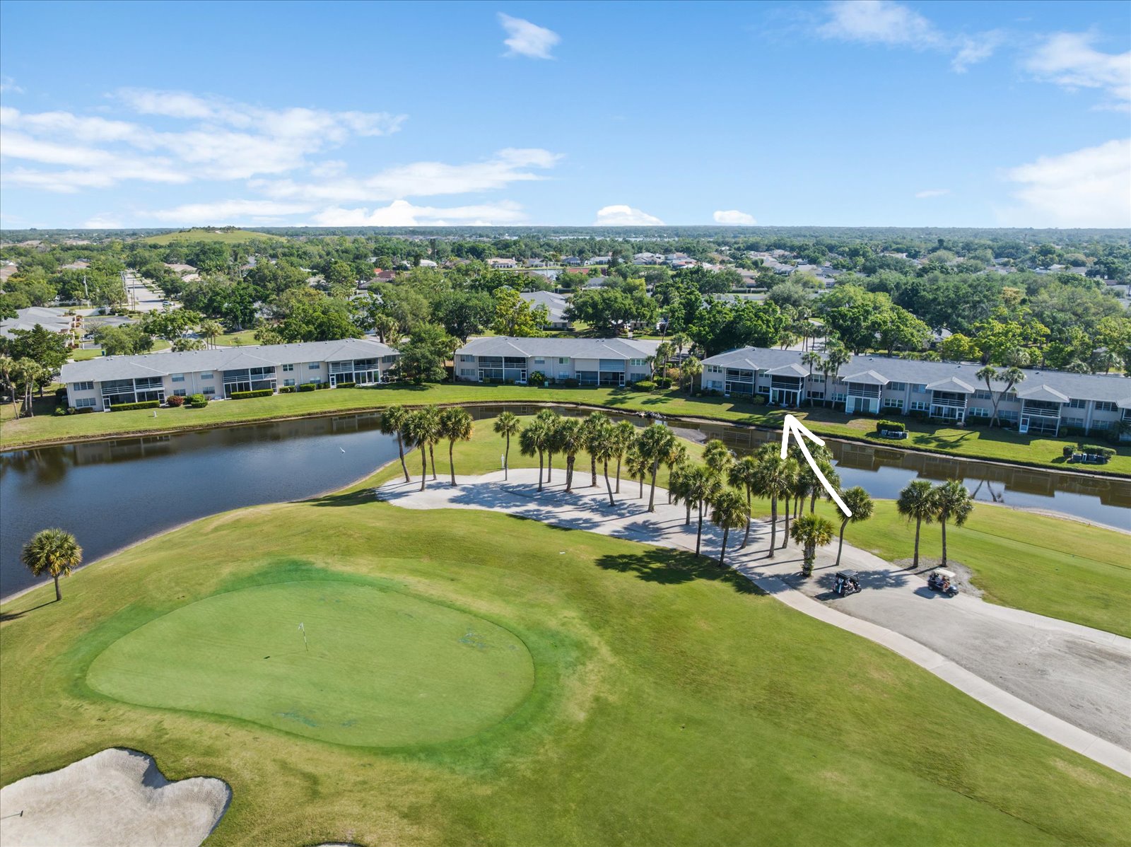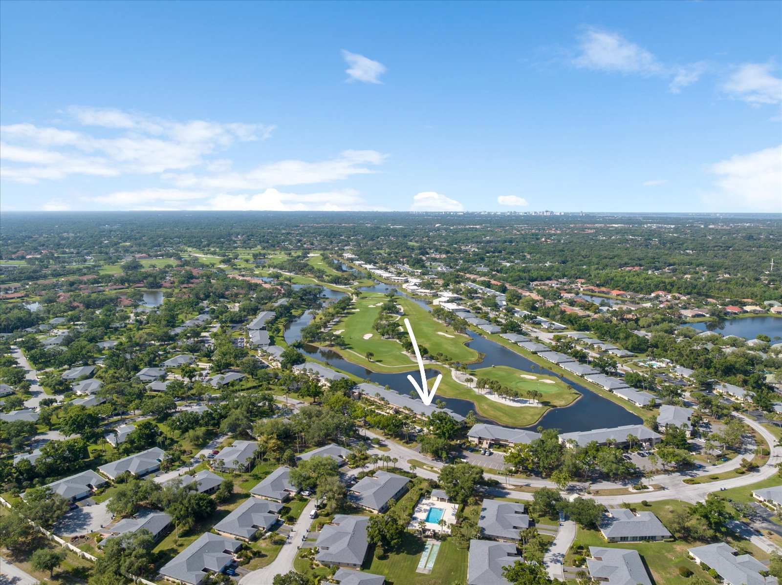 Watch serene mornings unfold with coffee in hand and breathtaking sunsets fade as you sip cocktails from your sunroom/enclosed lanai overlooking the immaculately maintained Champions Course at Palm Aire Country Club. This beautifully furnished 3-bedroom, 2.5 bath unit in Sarasota's sought after Palm Aire community offers a split floor plan with water and golf views of the 13th Green/14th Tee from the primary bedroom, third bedroom, living room, and sunroom/enclosed lanai. Pocket doors throughout create an open, airy flow. Hurricane impact windows and sliders (installed 2020) provide peace of mind and quiet throughout. The spacious kitchen features solid wood cabinets, stainless steel appliances, and a large window bringing in natural light. In-unit laundry for convenience. Major systems updated: roof 2022, A/C 2020, water heater 2020, Smart thermostat installed in 2020, and a commercial grade dehumidifier 2020 in place. This home is move-in ready with nothing to do, just bring your toothbrush and enjoy all this community has to offer. One of two community pools is right across the street. Optional membership available at Palm Aire Country Club, choose from several tiers to enjoy 36 holes of golf consisting of two 18-hole courses, pro shop, tennis, pickleball, fitness center, heated saltwater Junior Olympic-sized pool, social events, banquets, and fine dining in a beautiful clubhouse setting. Prime Sarasota location: minutes to University Town Center mall, top rated dining, Mote SEA, Nathan Benderson Park, SRQ Airport, theaters, and award-winning beaches including Siesta Key, ranked the #1 beach in the U.S and among the best in the world. This is the low-maintenance Florida lifestyle you've been searching for with no CDD fees and a low monthly fee of $410 which covers 2 pools, water, sewer, trash, building insurance, escrow reserves, ground and building maintenance including roof, and management company.