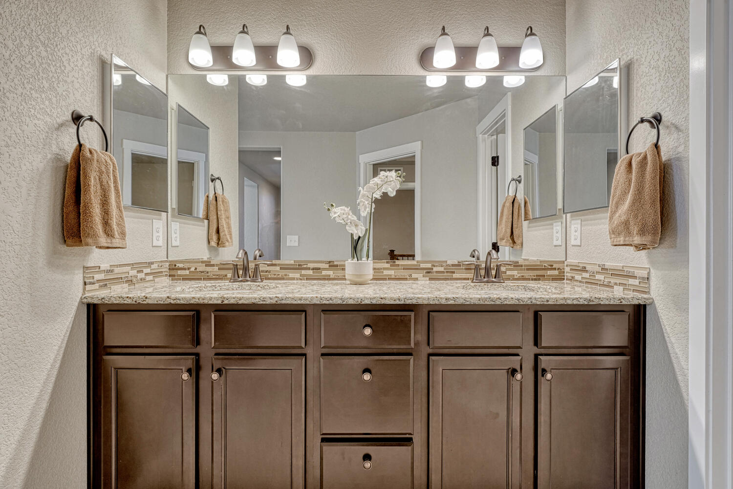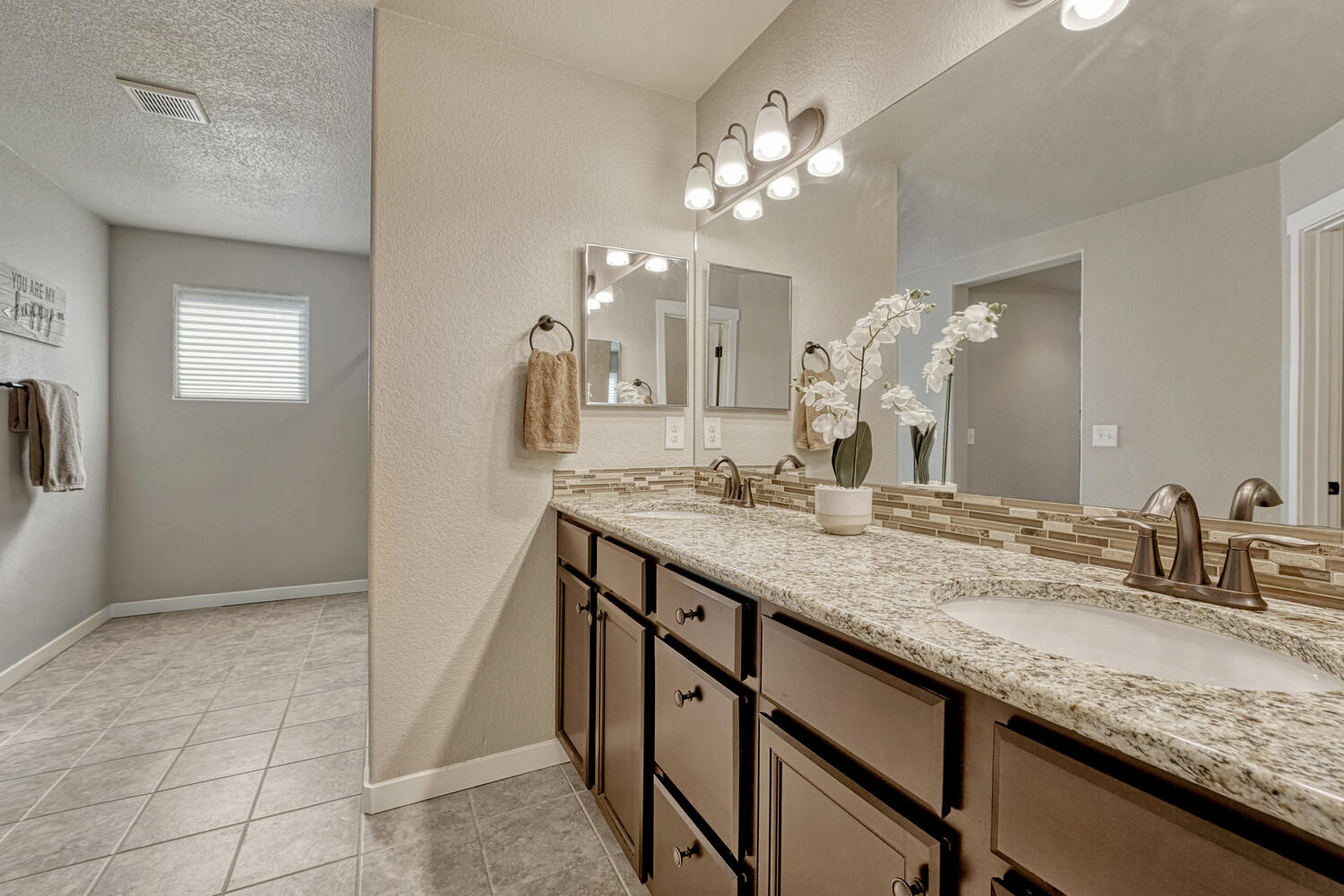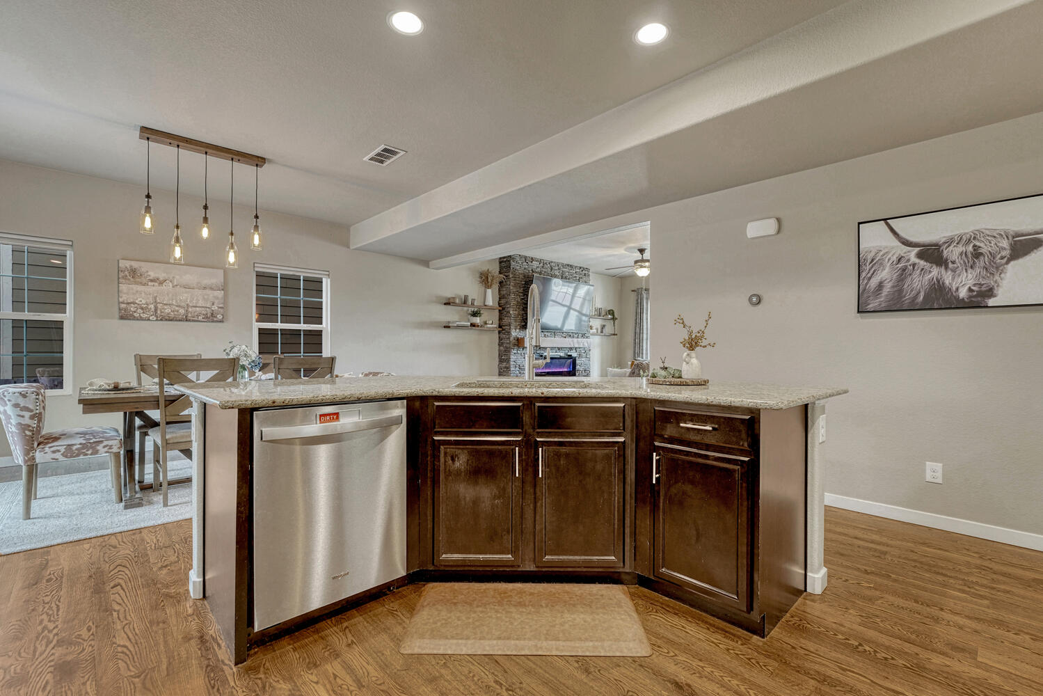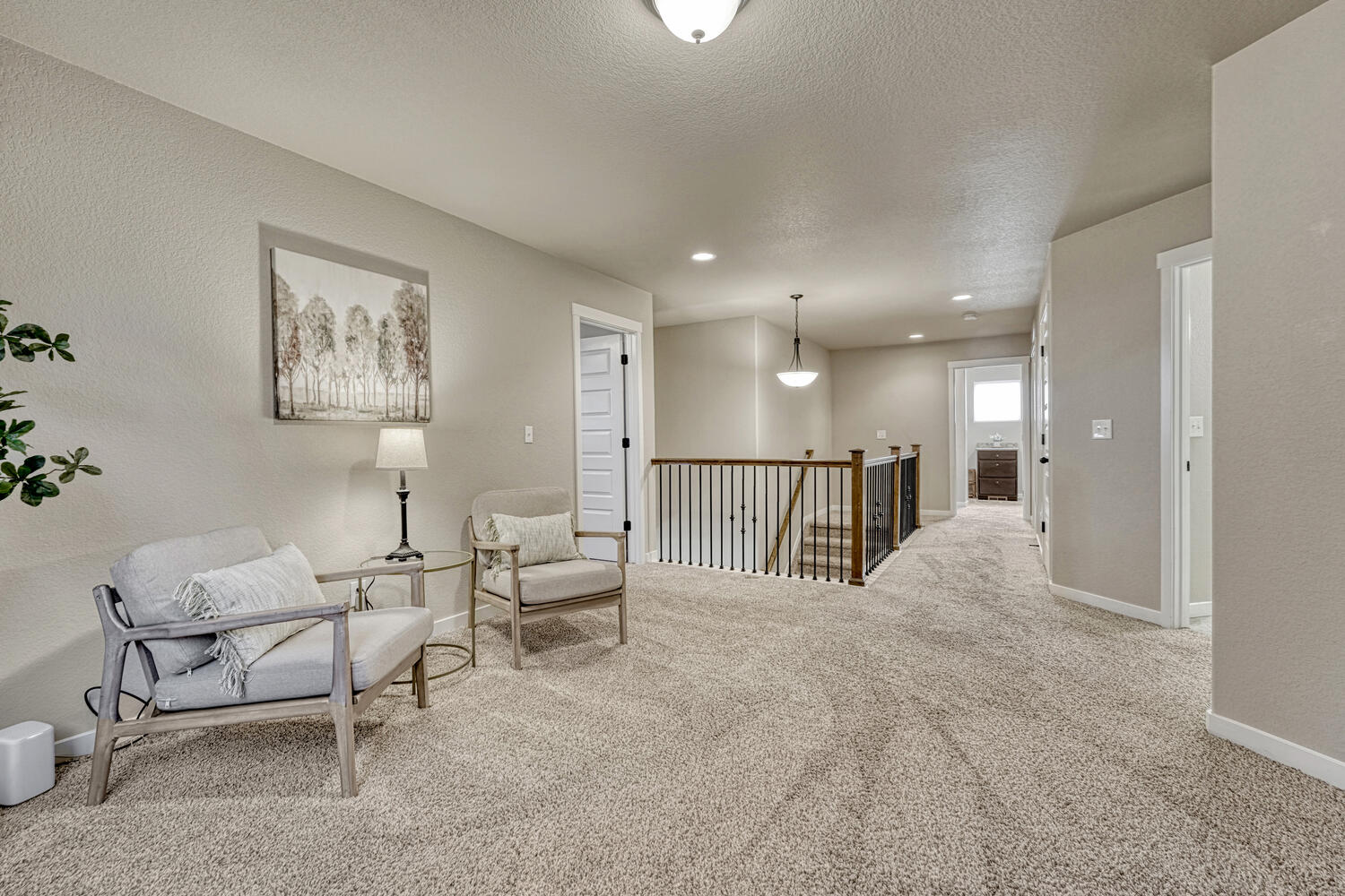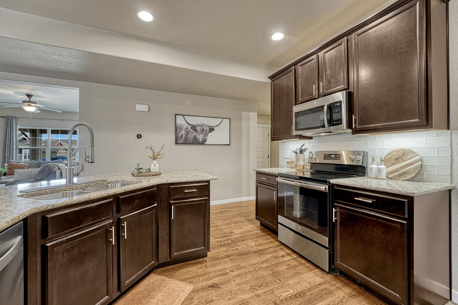 Pristine & beautifully upgraded 4BR, 4BA 2-story home with Finished Basement & oversized 4-Car Garage. Nestled on a fenced 0.18-acre lot with breathtaking Pikes Peak views. The low-maintenance, xeriscaped front yard & covered front porch create a fabulous 1st impression! Inside, 3,280 sf of thoughtfully designed living space showcases quality finishes & numerous upgrades, including central A/C, efficient heating, ceiling fans, & window blinds, curtains, & rods throughout. Gleaming hardwood floors highlight the Entry, Dining Room, & Gourmet Kitchen. The inviting Living Room features neutral carpet, a lighted ceiling fan, & an electric fireplace with floor-to-ceiling stone surround, flowing seamlessly into the walk-out Dining Room & Kitchen, ideal for entertaining. The Dining Room offers modern pendant lighting & patio access. The Chef-Inspired Island Kitchen boasts granite countertops, espresso cabinetry, breakfast bar, pantry, & ample prep space. A convenient Powder Bath & Mudroom with direct garage access complete the main level. Upstairs, iron railings lead to a spacious Loft, Laundry Room, 3 BRs (one currently used as an office), & 2 Full Baths. The Primary Suite is a private retreat with sitting area, walk-in closet, & spa-like 5pc Bath with dual vanities, soaking tub, & separate shower. 2 addtl BRs share a Full Hall Bath with dual sinks & tiled tub/shower. The Finished Basement offers exceptional flexibility with a Family Room, Kitchenette/Wet Bar with refrigerator and dishwasher, BR with walk-in closet, & adjoining Full Bath, perfect for guests, in-laws, or a teen suite. The backyard is designed for relaxation & entertaining with auto sprinklers, expanded patio with gazebo, fire pit with bench seating, & stunning Peak views. Located near schools, parks, & hospital. Enjoy shopping, restaurants & entertainment along the Powers Corridor with easy access to I-25 & Peterson Space Force Base. Move-in ready & waiting for you to call it home.