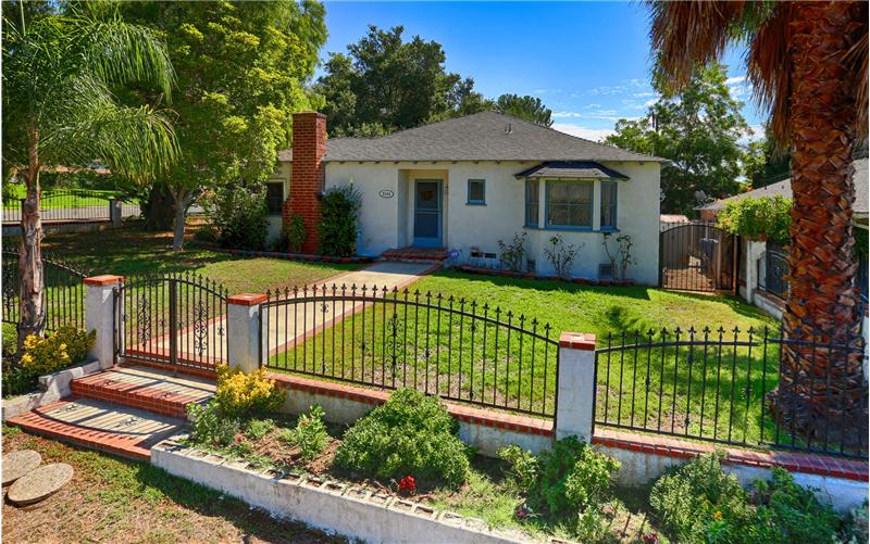 Delightful corner property with legal guest house & mountain views. Main house: 1661 Sq. Ft. Guest house: 435 Sq. Ft. Spacious living & dining rooms with double door to covered patio. Hardwood floors throughout home. Family room. Front bedroom w/bay window. Large master bedroom. Kitchen w/oak cabinets, new refrigerator & granite countertops. Legal guest unit includes bedroom, living room, 3/4 bath & a kitchen area. Perfect for extended family or rental. Grassy fenced front yard. Laundry room in garage. Side by side parking for 2 cars on driveway.