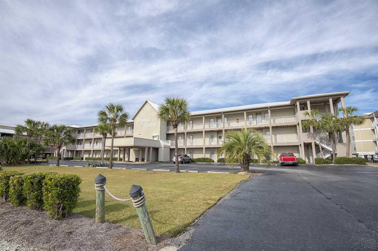 Welcome to Dolphin Harbor! This coastal condo affords residents direct river access and deeded private access to one of Alabama's beautiful beaches just across the street! This 2nd floor unit offers a functional 3bed-3bath split bedroom floor plan, with a sunlit living/dining area and convenient-sized kitchen complete with large breakfast bar for extra seating. The master bedroom features a double vanity sink, garden tub, separate shower, walk in closet and private access to cozy back patio complete with custom tile.