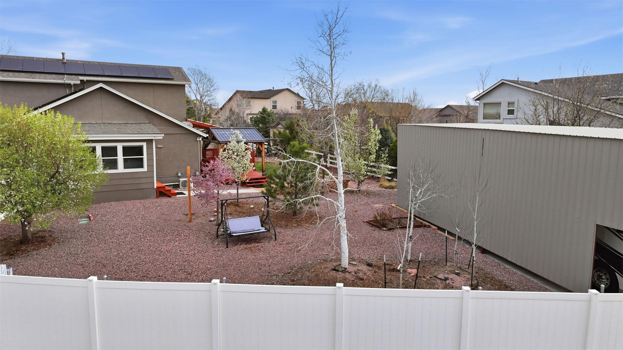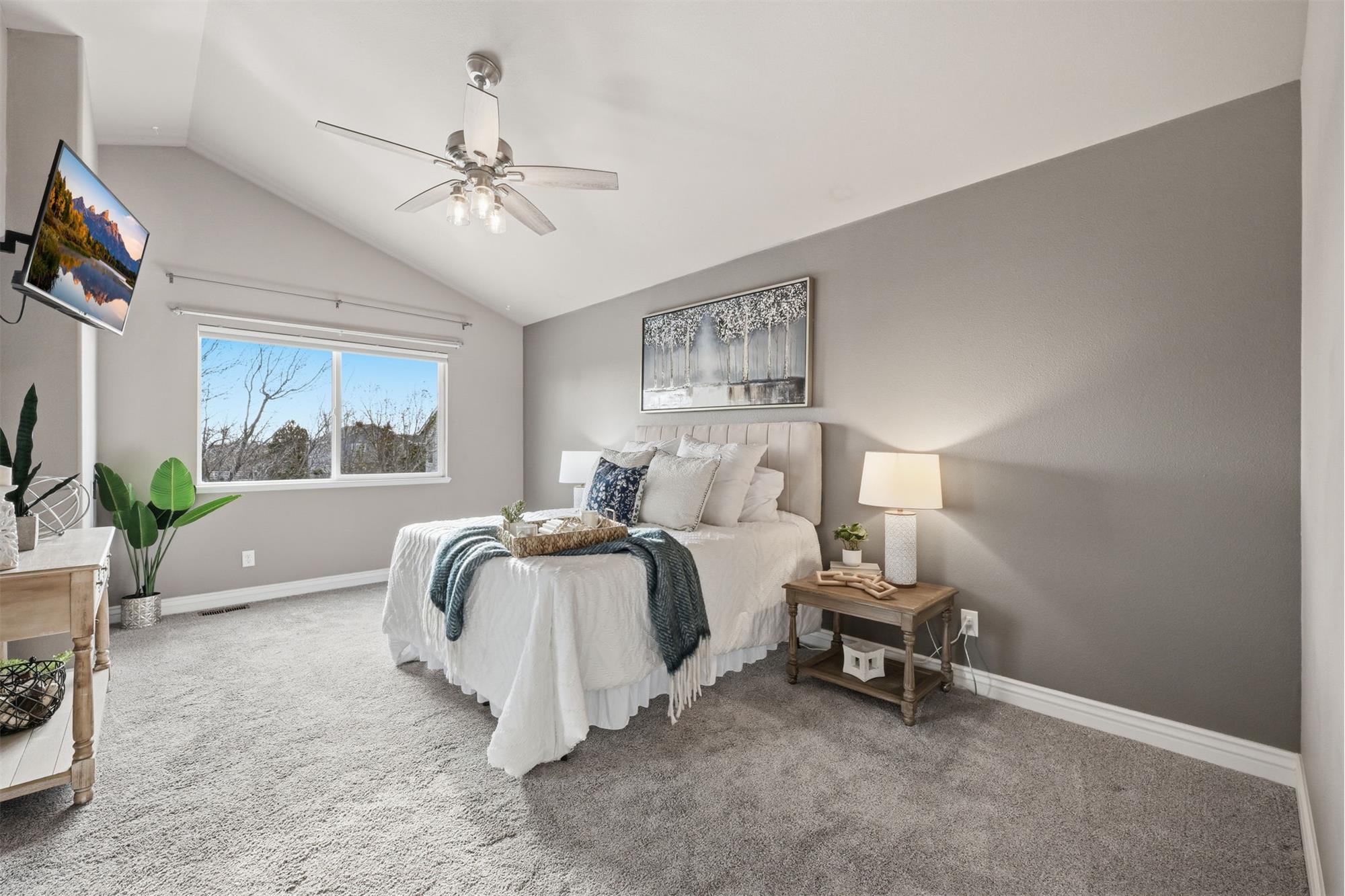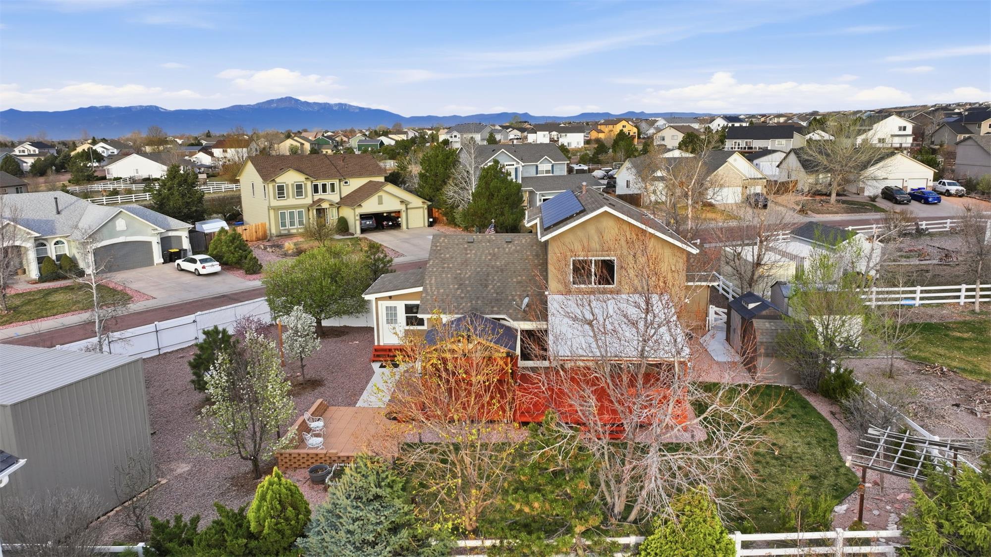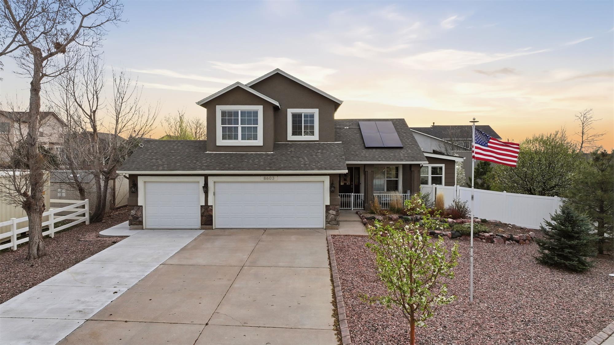As you pull up to this home, you'll see the fully xeriscaped front yard with concrete border. When you step inside you'll be greeted with an open floor plan with so many features you will be amazed. Smart features include things like lighting, shades, fireplace and thermostat that you can customize to your hearts content. The shades are motorized so you don't have to use the smart feature if you don't want to. This home has been fully updated in recent years & will bring you many years of enjoyment without having to do a thing. The kitchen is a dream to cook & entertain in. Your guests can enjoy your company at the island while you prepare food. The black stainless appliances are included. The double oven makes meal prep even better. Off the living room is a wonderful sun room with a mini-split for temperature control. With central A/C and 6 ceiling fans, you'll stay cool all summer long. Imagine enjoying the the huge covered deck (2-20x15 &12x12) in the backyard during the summer. Up stairs, the large primary bedroom has an ensuite bathroom with double vanity, large free standing shower large walk in closet & hookups for washer & dryer. Two more bedrooms upstairs & a full bathroom as well. The garage entrance has a coat closet & a half bath with another set of washer/dryer hookups. The basement has an additional non-conforming bedroom that can also be used as an office or hobby room. The basement has a bathroom and a HUGE family room/rec room area with storage as well. If you want another bedroom, you can add a wall & a door. The entire yard has an automatic drip system and sprinkler system so you never have to worry about watering. A huge RV carport is included for your toys! A solar system with battery backup will keep you going if the power goes out. Two sheds are also included. The roof is a class IV shingle and there are gutter guards, so no gutter cleaning! The metro district you are a part of has swimming, exercise rooms, pickleball courts & more. Don't miss this one!