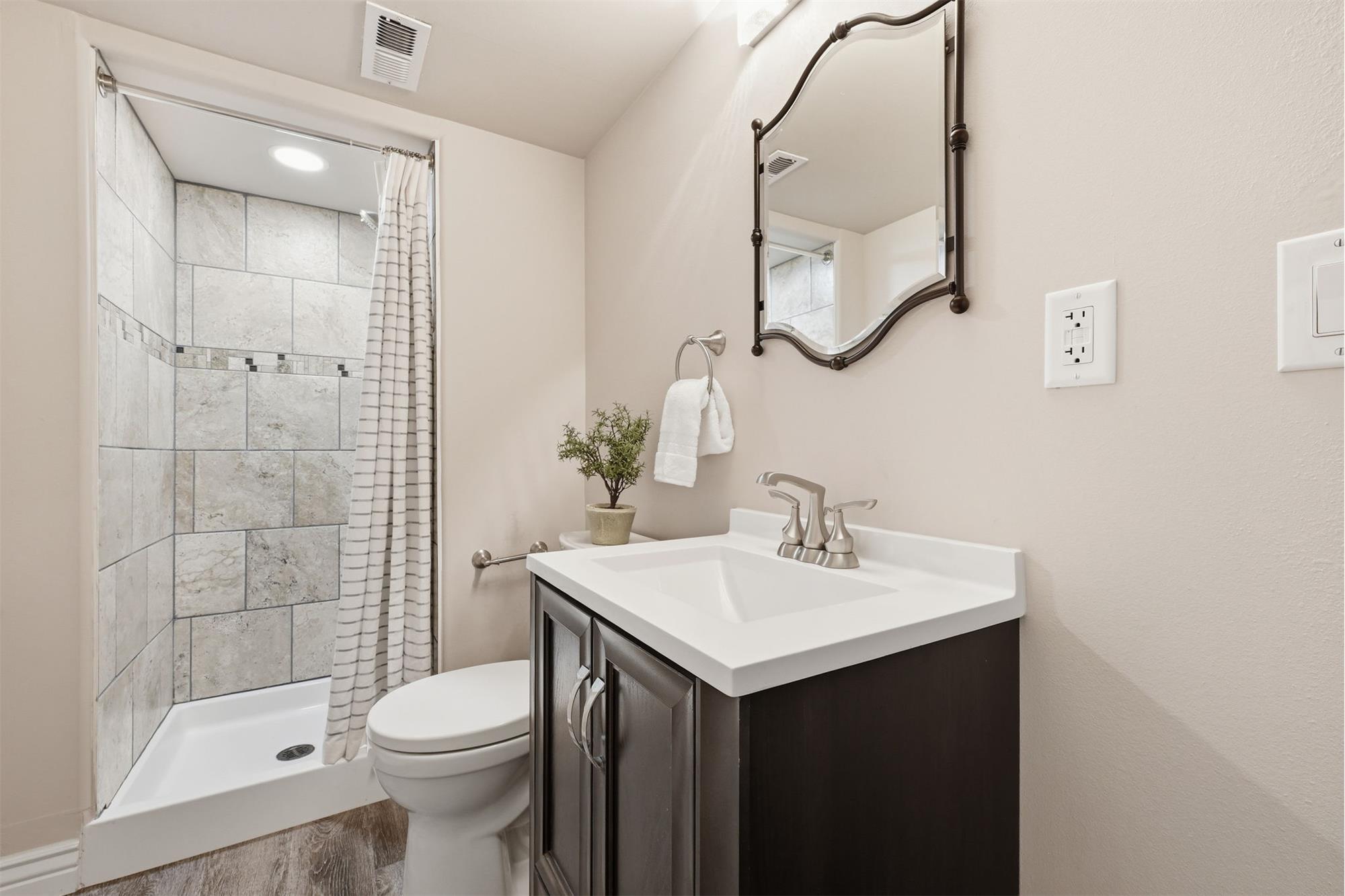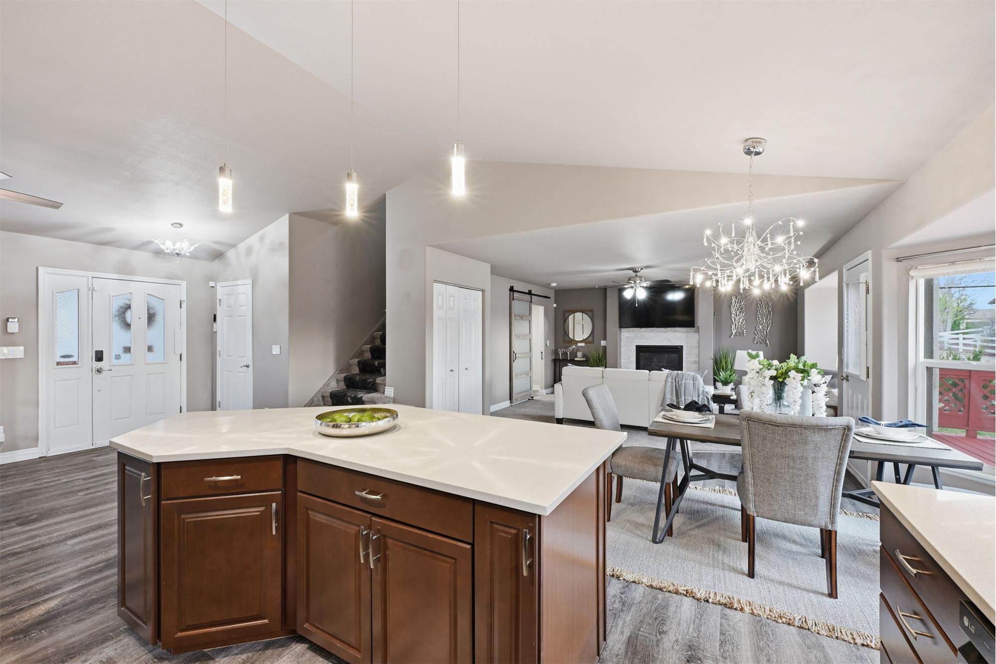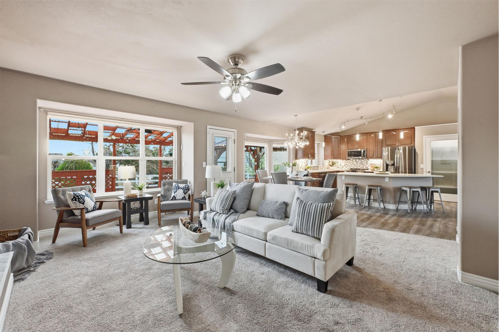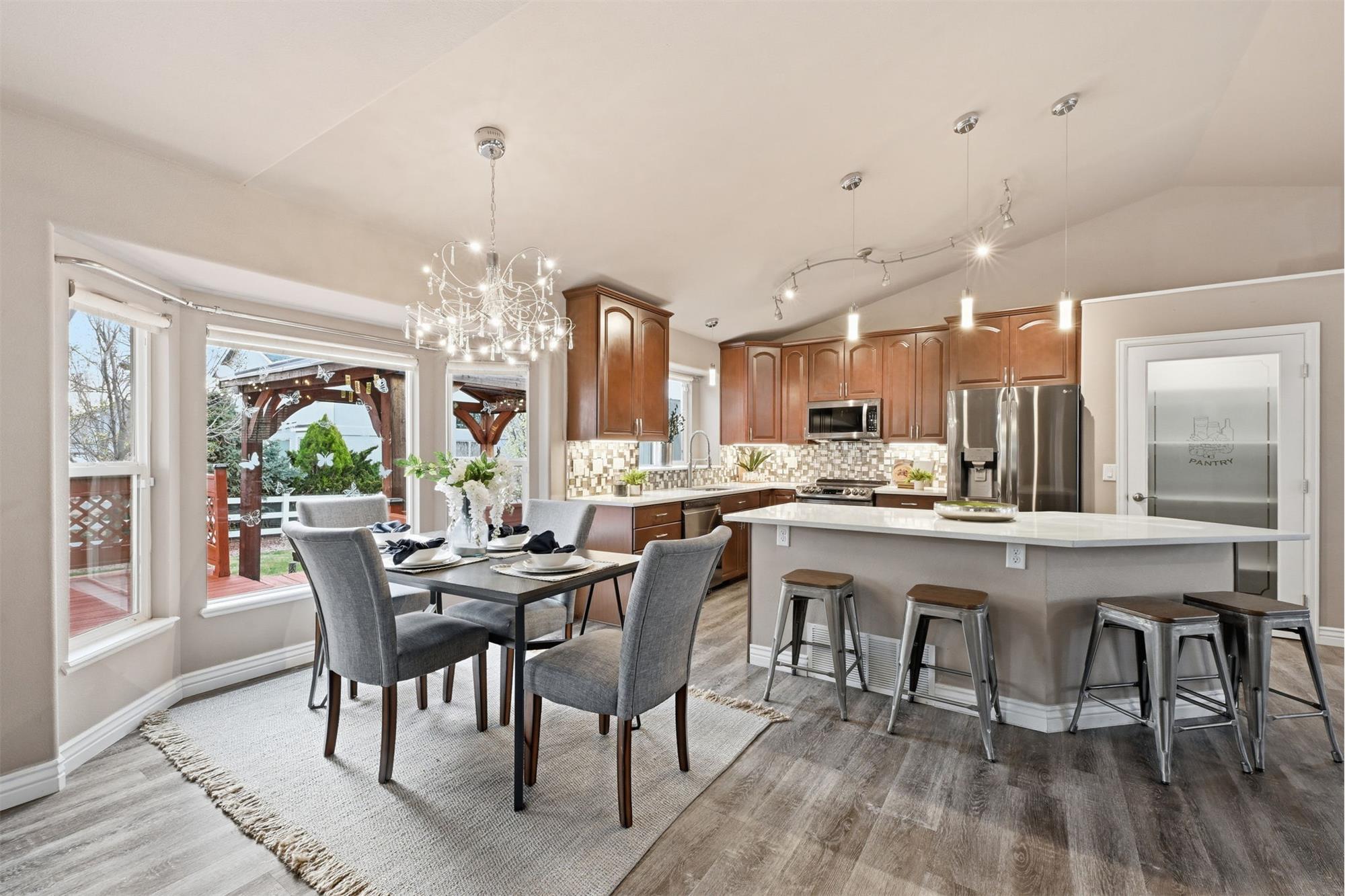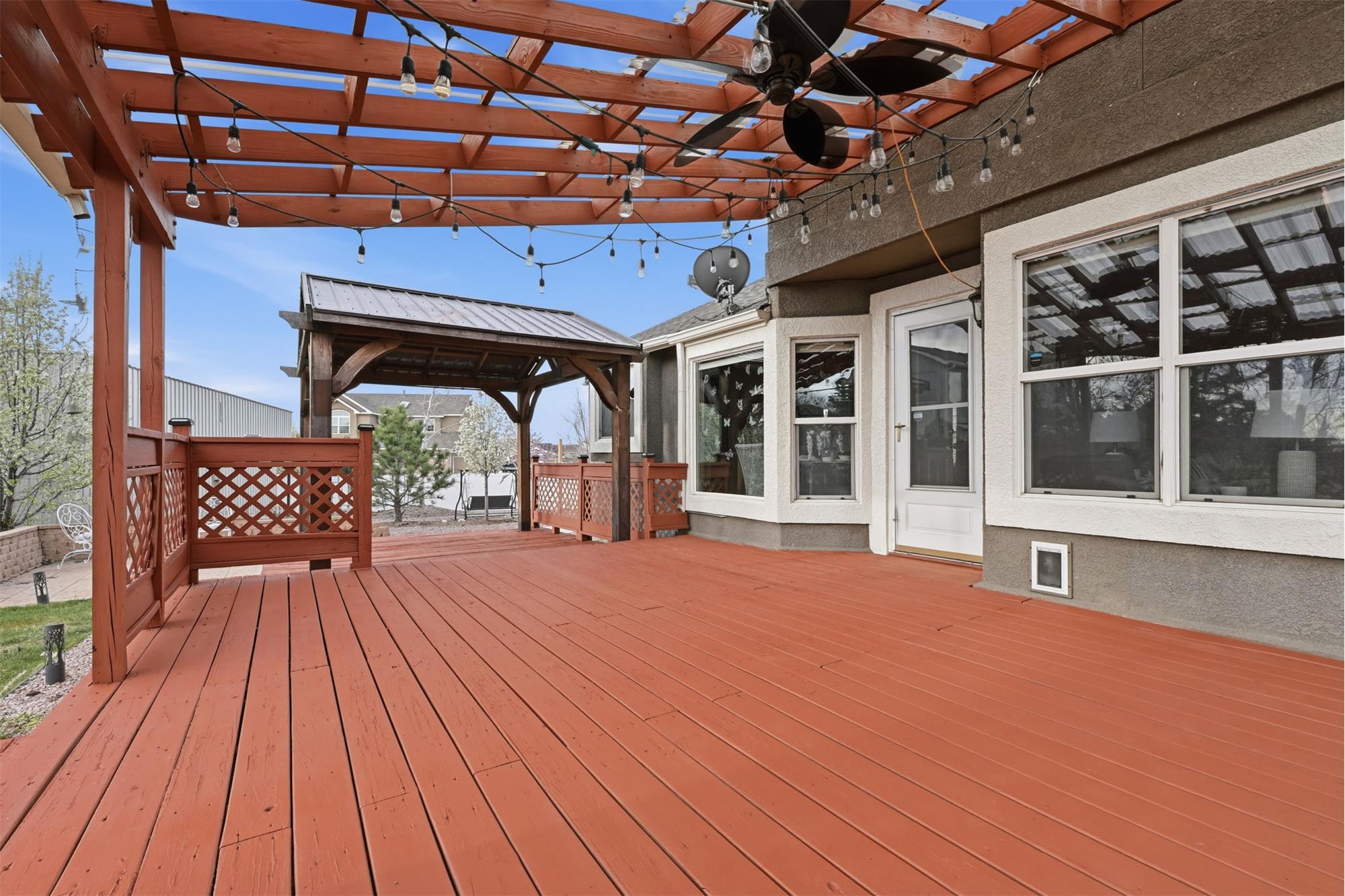 As you pull up to this home, you'll see the fully xeriscaped front yard with concrete border. When you step inside you'll be greeted with an open floor plan with so many features you will be amazed. Smart features include things like lighting, shades, fireplace and thermostat that you can customize to your hearts content. The shades are motorized so you don't have to use the smart feature if you don't want to. This home has been fully updated in recent years & will bring you many years of enjoyment without having to do a thing. The kitchen is a dream to cook & entertain in. Your guests can enjoy your company at the island while you prepare food. The black stainless appliances are included. The double oven makes meal prep even better. Off the living room is a wonderful sun room with a mini-split for temperature control. With central A/C and 6 ceiling fans, you'll stay cool all summer long. Imagine enjoying the the huge covered deck (2-20x15 &12x12) in the backyard during the summer. Up stairs, the large primary bedroom has an ensuite bathroom with double vanity, large free standing shower large walk in closet & hookups for washer & dryer. Two more bedrooms upstairs & a full bathroom as well. The garage entrance has a coat closet & a half bath with another set of washer/dryer hookups. The basement has an additional non-conforming bedroom that can also be used as an office or hobby room. The basement has a bathroom and a HUGE family room/rec room area with storage as well. If you want another bedroom, you can add a wall & a door. The entire yard has an automatic drip system and sprinkler system so you never have to worry about watering. A huge RV carport is included for your toys! A solar system with battery backup will keep you going if the power goes out. Two sheds are also included. The roof is a class IV shingle and there are gutter guards, so no gutter cleaning! The metro district you are a part of has swimming, exercise rooms, pickleball courts & more. Don't miss this one!