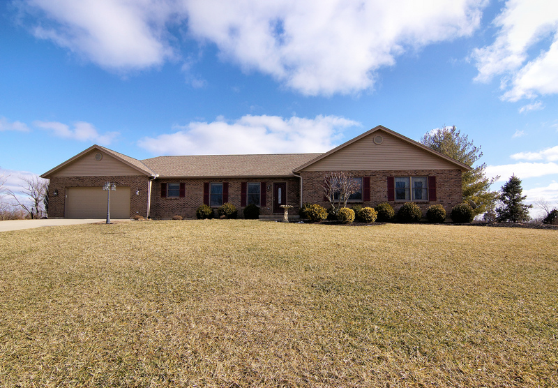 Newer custom brick ranch on 6+ acres. Open floor plan with cathedral ceiling and updated kitchen. Brazilian cherry hardwood floors. Covered deck, walkout basement with full kitchen. Large finished barn with electric. Extended gravel lane. Gorgeous!