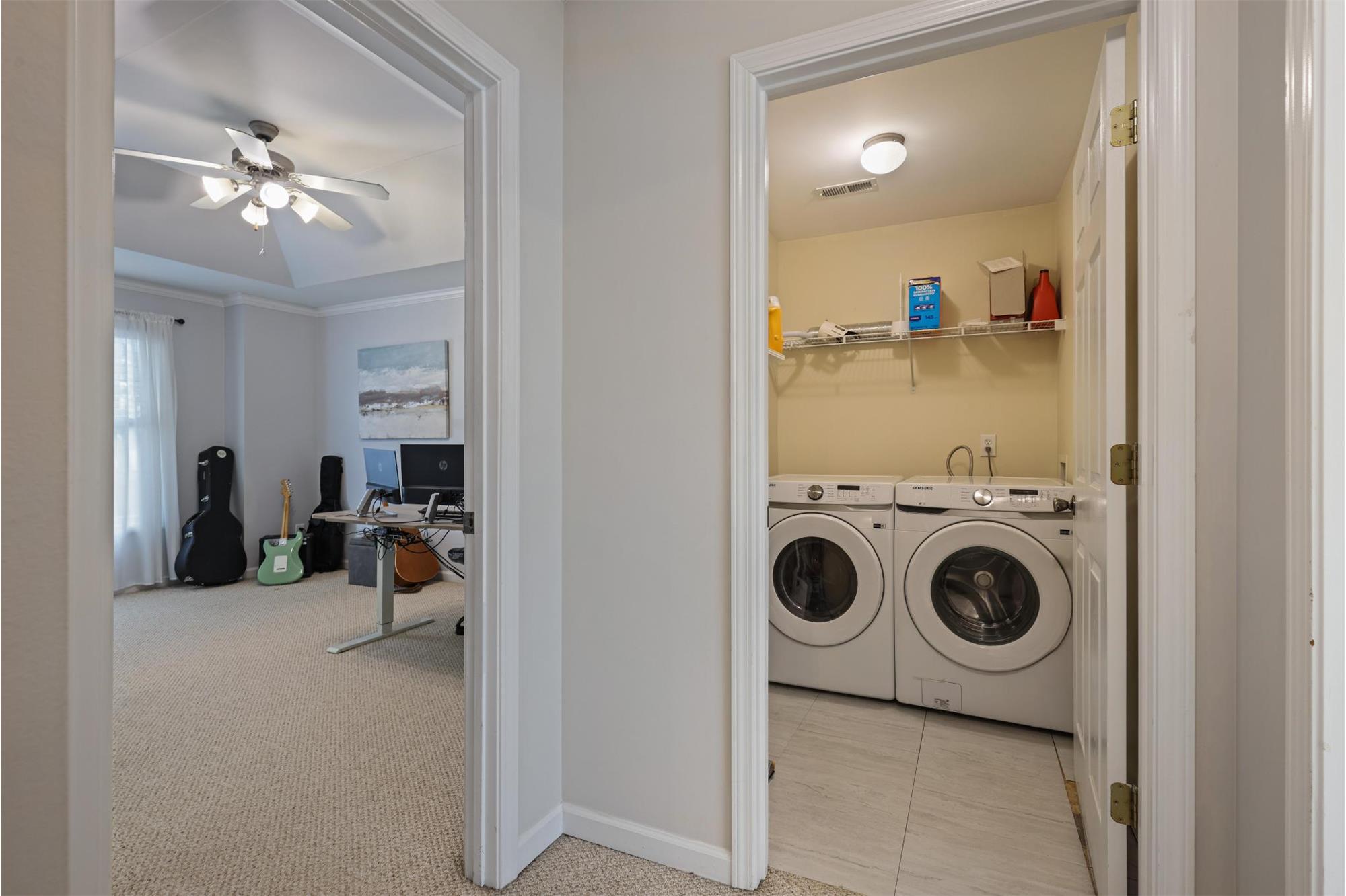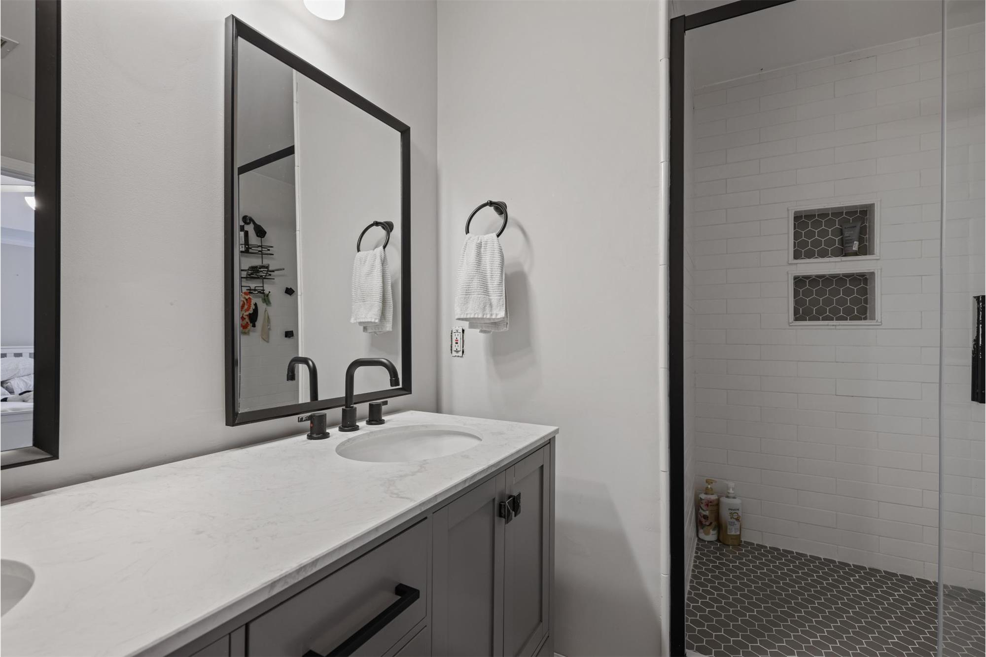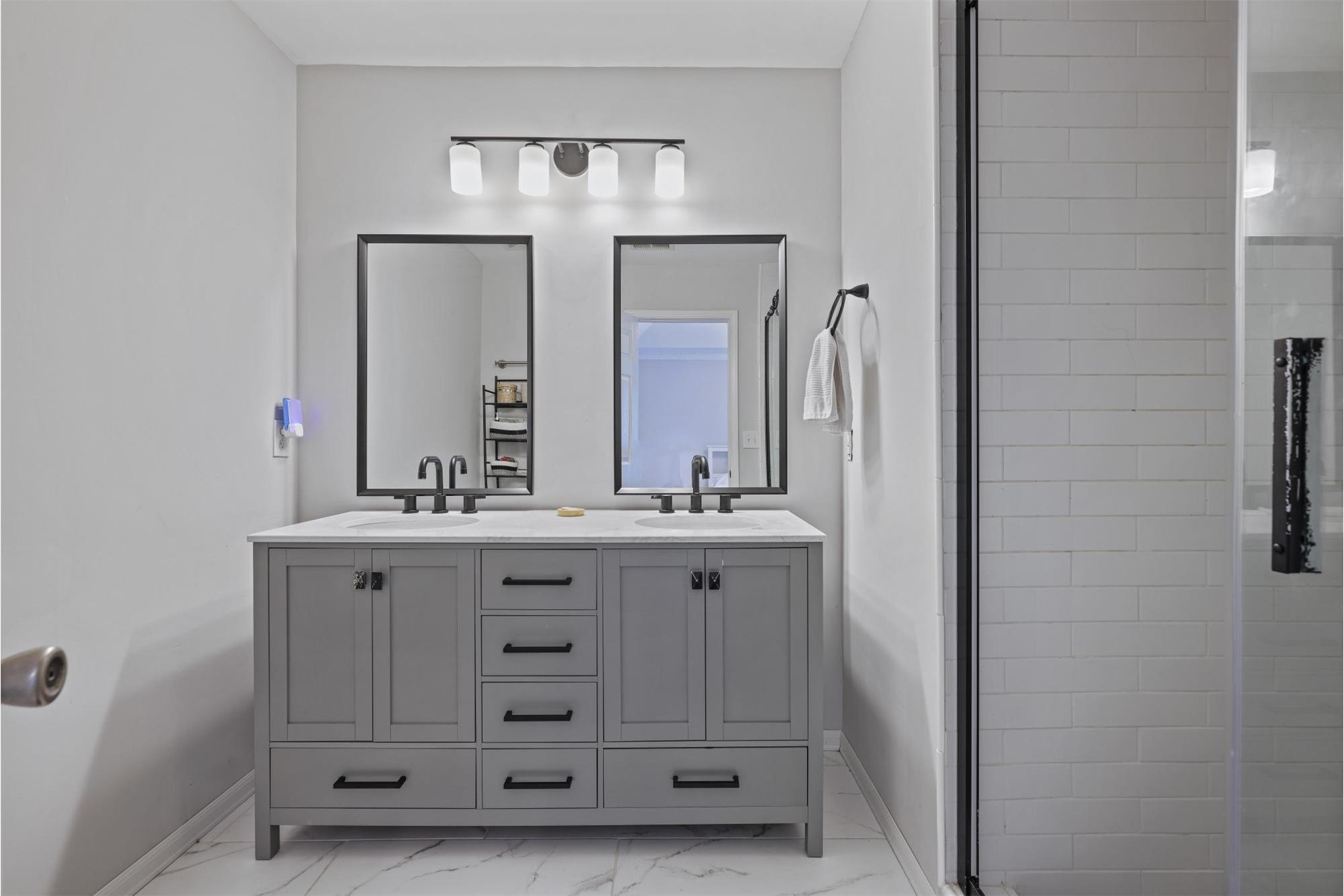 Upstairs, the spacious primary suite is a tranquil escape, featuring a vaulted ceiling, hardwoods, and elegant crown molding. Luxurious en-suite bath offering a double vanity, soaking tub, and a large walk-in tiled showeryour personal oasis for relaxation. The upper level also includes a generous secondary bedroom with its own private bath and walk-in closet.
