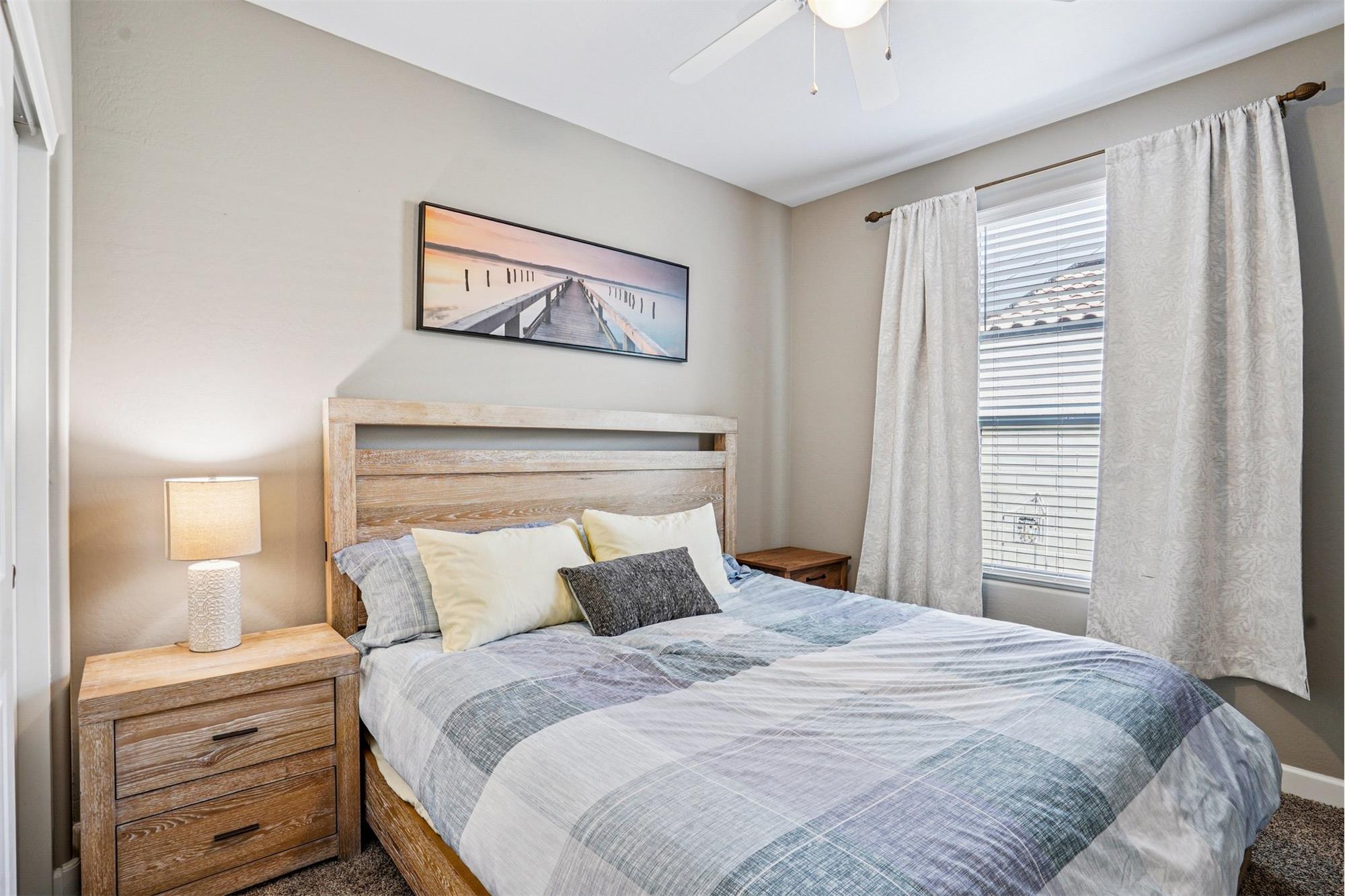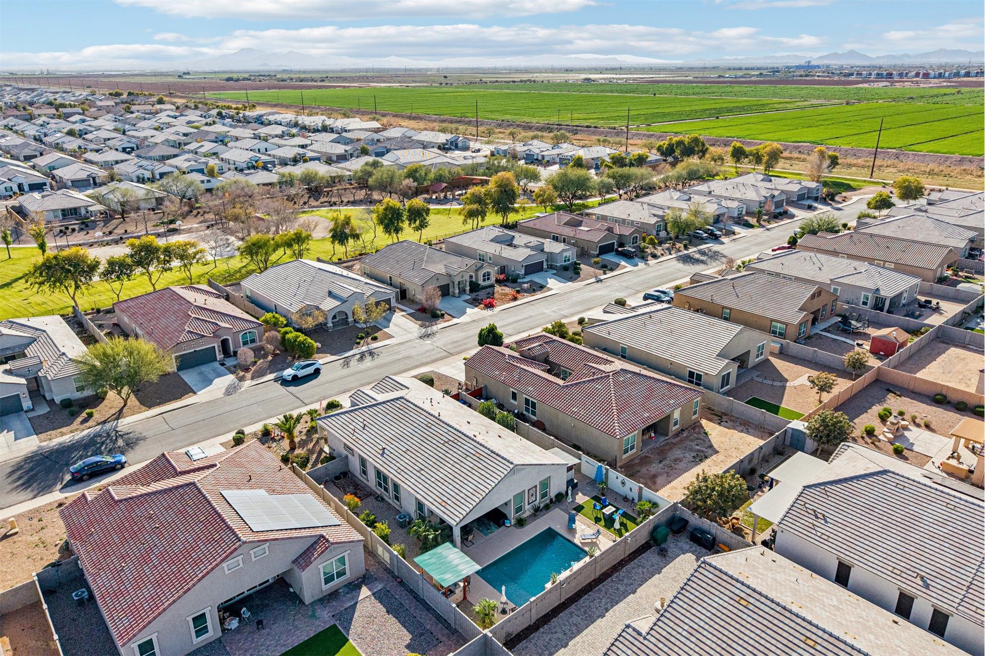 Welcome to this spacious 5-bedroom, 3-bath home located in Rancho Mirage Estates, where comfortable living meets great outdoor space. Inside, you'll find an open layout with tile flooring in the main areas, neutral finishes, and plenty of natural light. The kitchen is open to the dining area and living room, featuring granite countertops, stainless steel appliances, ample cabinetry, and a large island that makes everyday living and entertaining easy. Sliding doors off the main living area lead directly to the backyard, creating a nice indoor-outdoor flow. The primary bedroom offers a private retreat with dual sinks, a walk-in shower, and generous closet space. The additional bedrooms provide flexibility for guests, home offices, or extra living space. Out back, enjoy your own private escape with a sparkling pool, covered patio, outdoor bar and pergola, outdoor shower, and low-maintenance landscaping with artificial turf. Extra garage storage is an added bonus.