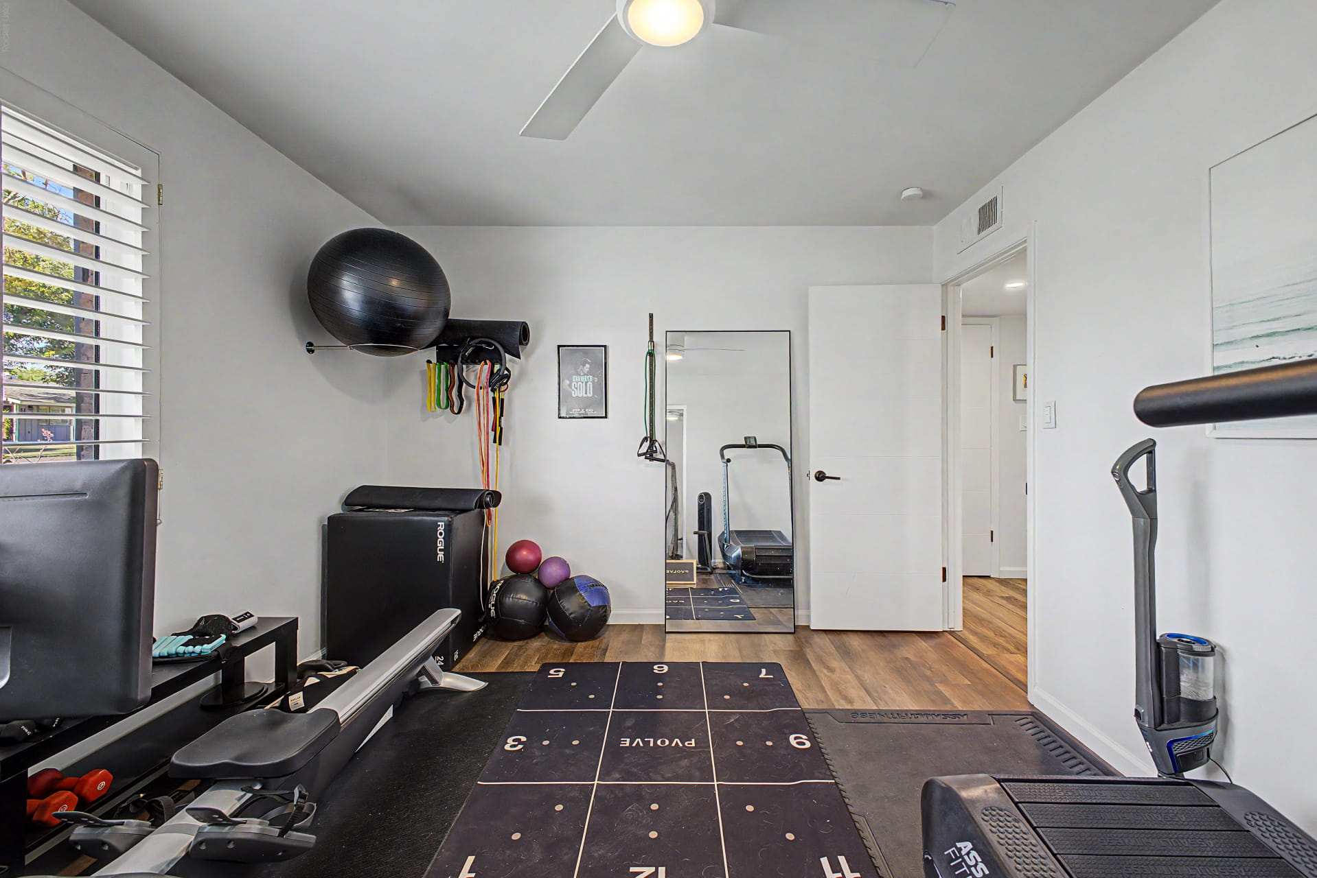 Plantation shutters and recessed lighting throughout