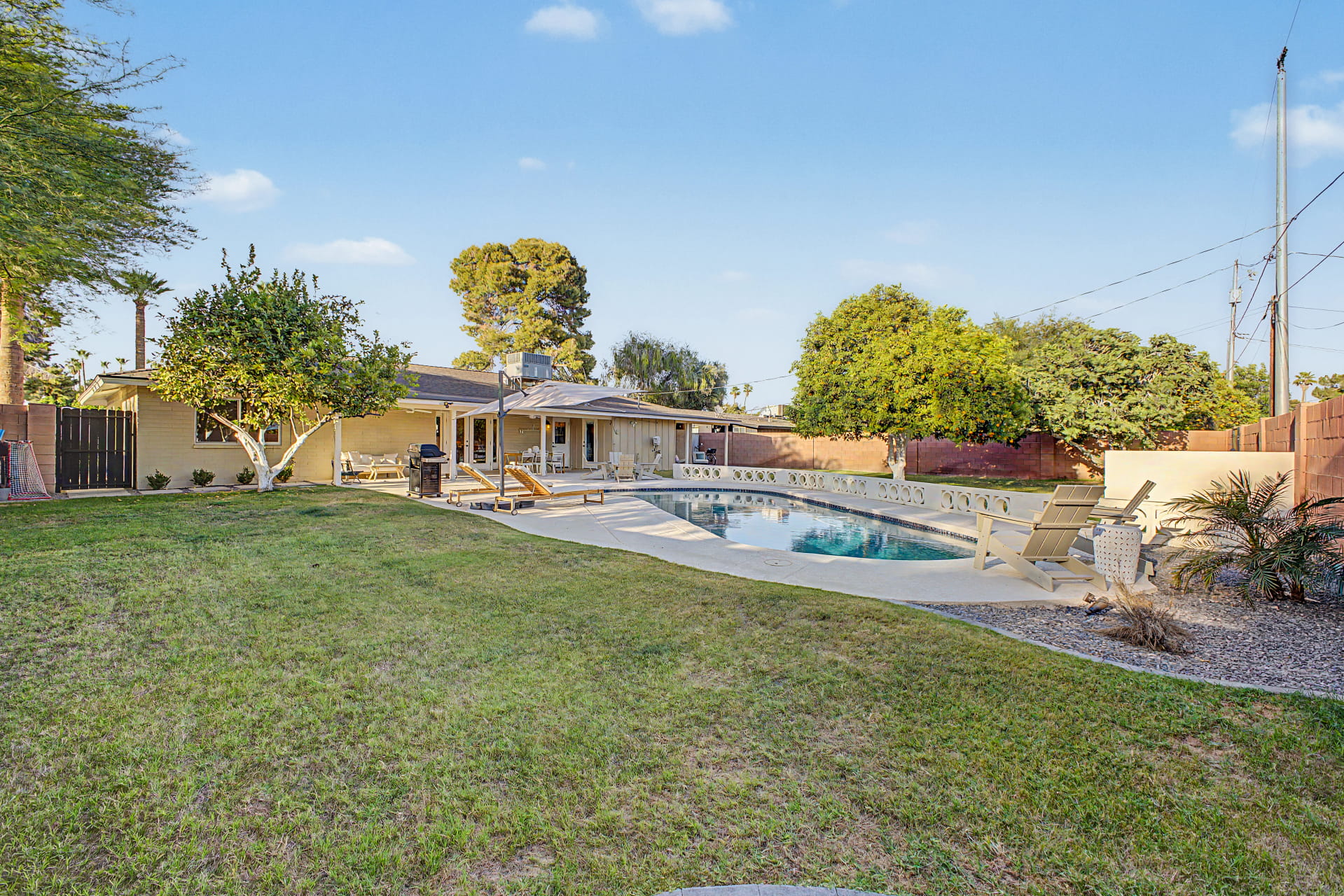 The backyard is set up for year-round Arizona living. A refinished Pebble Tec pool with cool decking makes the space comfortable even in the Phoenix summer, and the generous lot size leaves room for additional outdoor use beyond the pool area. For a central Phoenix neighborhood, a full quarter acre is a real find.