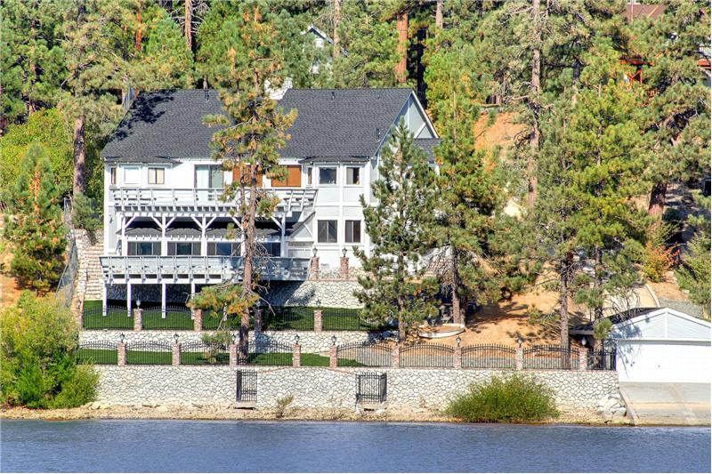 Nearly an acre of lakefront property in deep-water location with 121 ft. of Big Bear Lake frontage & 180 degree Boulder Bay views. Historic - former home to Cecil B. DeMille. Rustic interior with massive double-sided native stone fireplace, log accents, & T&G knotty Pine. Recently upgraded. 4 bedrooms + bonus room & game room, 2.5 bath. Detached garage & separate boat garage & boat launch.