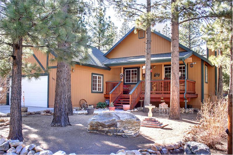 Charming and immaculate single-story home with garage in a great treed East Valley neighborhood. Stunning! Three bedrooms Two baths Approx 1,386 sq. ft. of living area Approx 7,360 sq. ft. lot Three decks Attached two-car garage Mr. and Mrs. Clean live here! Charming home with pride of ownership and maintenance obvious inside and out. In a nice easy-access area of Erwin Lake, the home offers an attached two-car garage, attractive low-upkeep yard, level and treed lot, and a quiet setting. Two rear decks, and covered entry porch Great Room living layout with vaulted ceilings, recessed lighting and a spacious feel. Floor-to-ceiling river rock hearth with efficient Lopi wood-burning stove for those chilly winter evenings. Several skylights for added light. Dining nook, and large open kitchen. Kitchen offers custom knotty pine cabinetry, wood floor, vaulted ceiling, island with bar seating, tile countertops and ceiling fan. Lots of warm wood accents throughout, including pine window, door & baseboard trim, and solid core wood doors throughout. Quality window treatments include 2” wood blinds and cellular shades. Separate laundry room; storage in garage. Three nice-sized bedrooms, and two full baths with tile, and pine vanities. The master bedroom has glass doors leading to private rear deck. Master bath offers a jetted tub and custom tile surround. Great full-time home, or move-in-ready getaway. Enjoy the quiet atmosphere of the East Valley, yet just a short drive to the lake & marinas,, shopping centers, ski resorts and Big Bear Village.