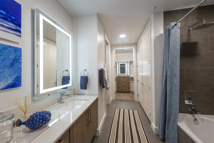 Illuminated Vanity with custom built dressers in walk-in closets*