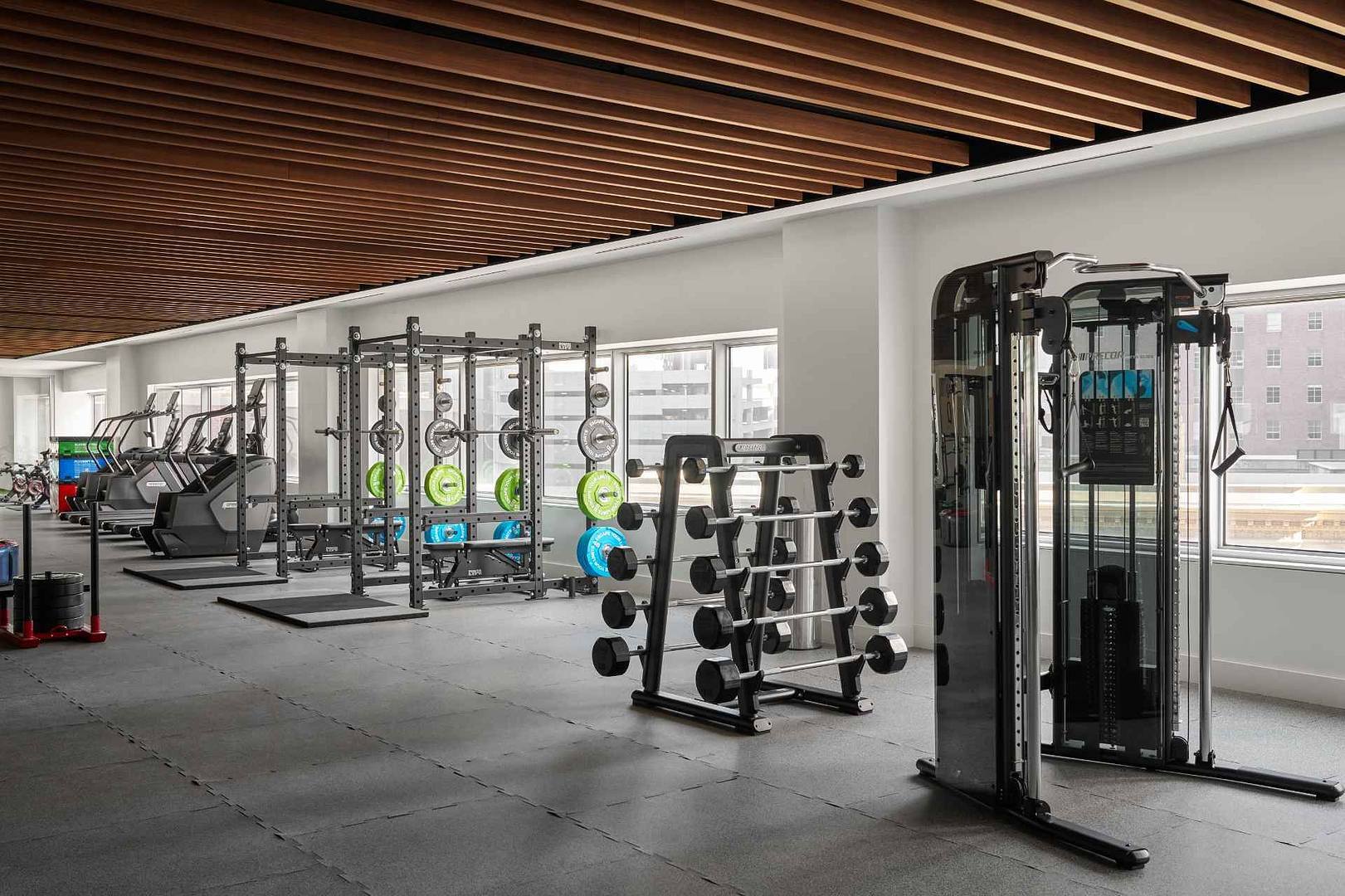 Full-Service fitness center with locker rooms, steam rooms, and saunas