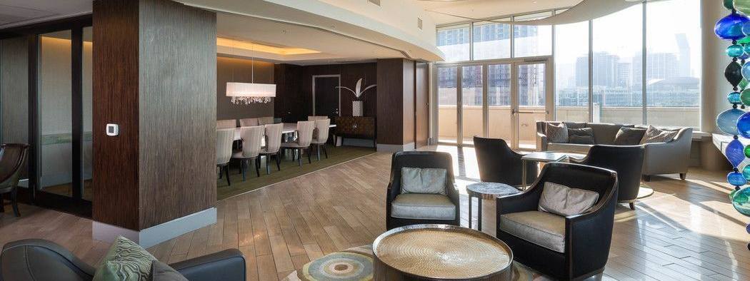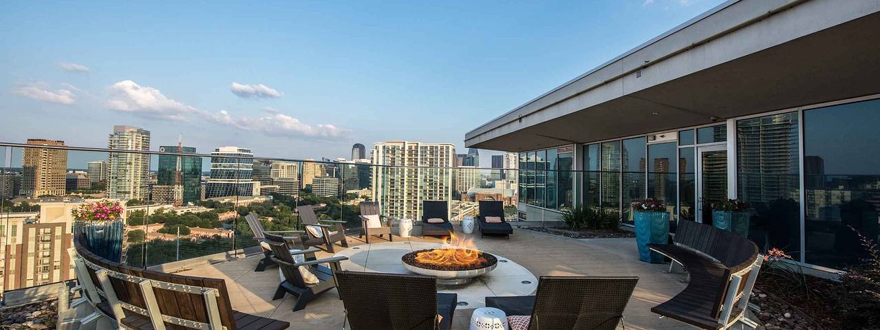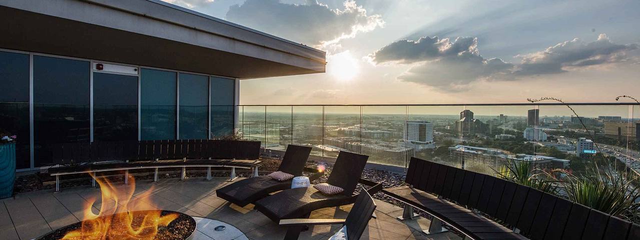 Skyline lounge with flat-screen TVs that opens to the outdoors