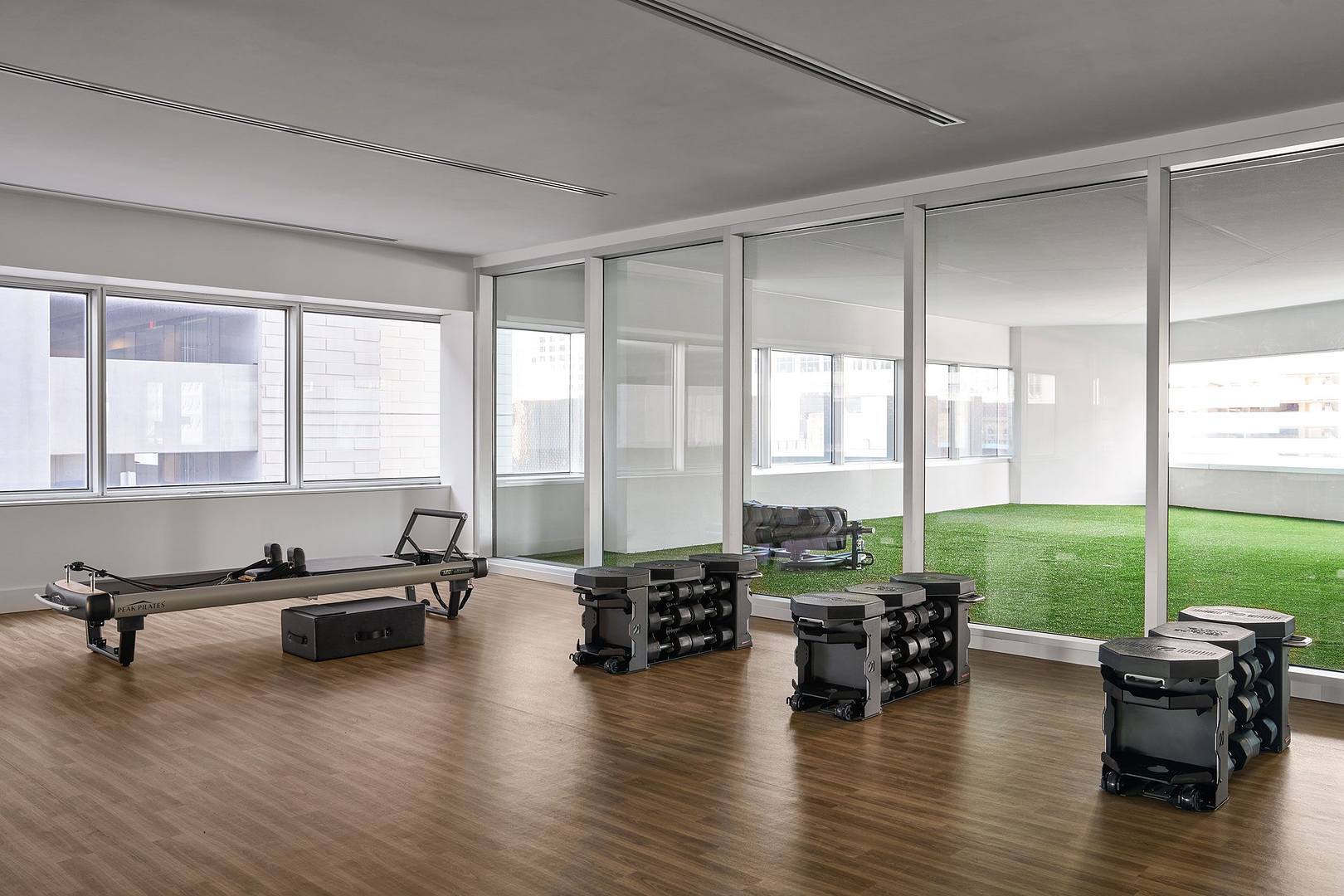 Full-Service fitness center with locker rooms, steam rooms, and saunas