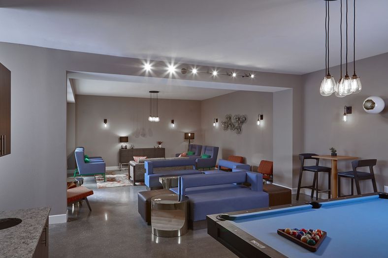 Controlled-Access Resident Clubroom with a Bar and Billiards