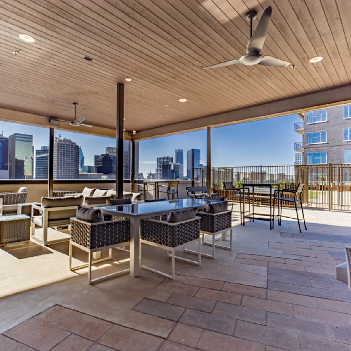 Infinity Edge Pool with Outdoor Soft Seating and Lounges with Fantastic Views of Downtown and Uptown
